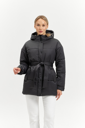 Капюшон - со средней вставкой, впереди со стойкой. Высоту капюшона можно регулировать резинкой с фиксатором.