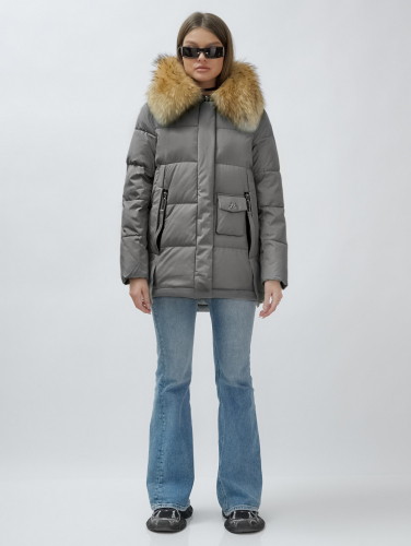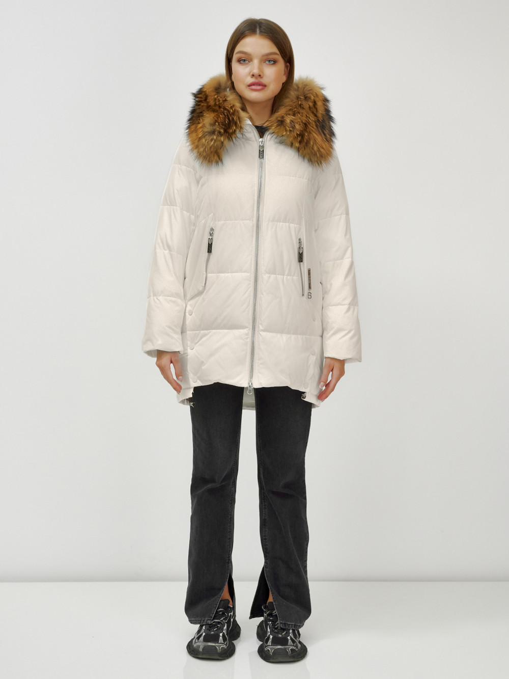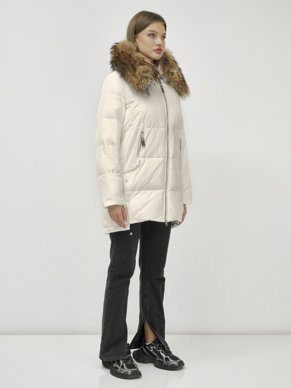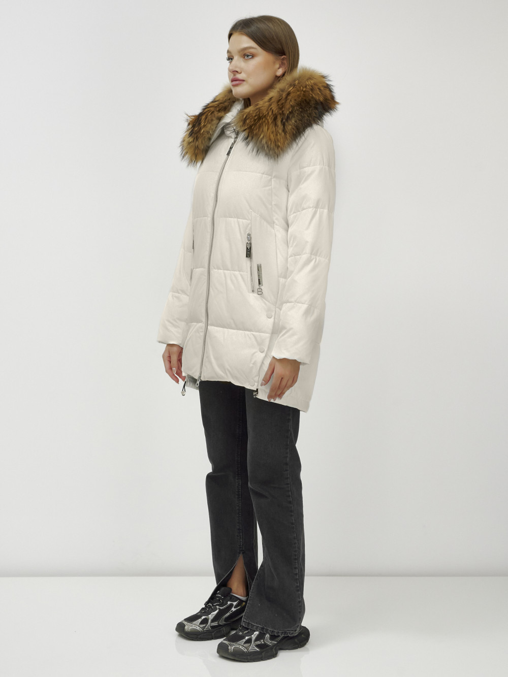 Куртка женская зимняя с мехом енот премиум класса бежевого цвета 381B