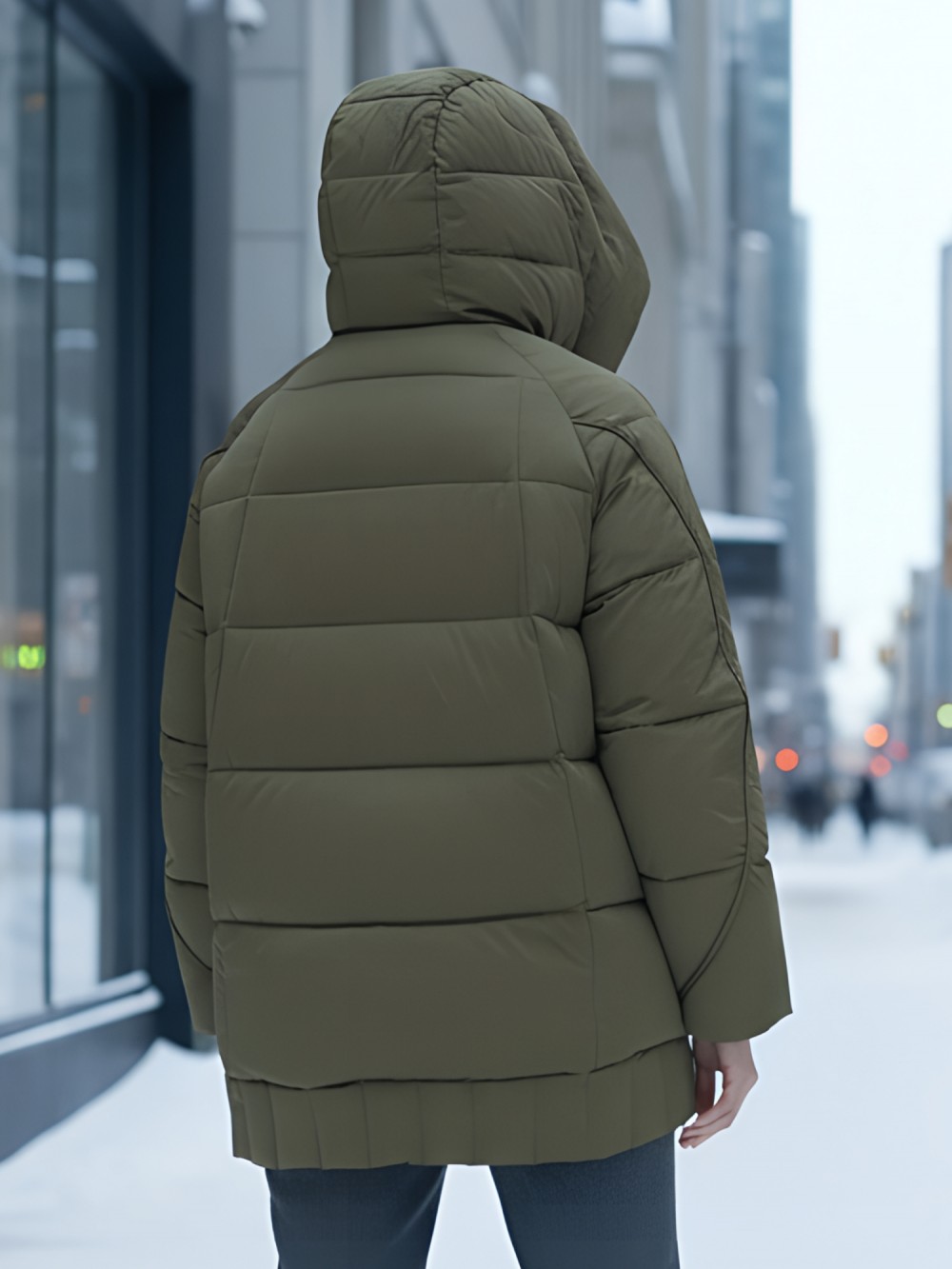 Эта куртка выделяется своим прямым и свободным покроем, длиной до бедра, что придаёт ей современный и стильный вид. Не съёмный капюшон и длинные рукава обеспечивают дополнительное тепло и защиту от ветра, а разнообразие цветов — черный, светло-коричневый, горчичный, хаки и коричневый — позволяет выбрать идеальный вариант для вашего гардероба.