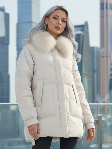Утеплитель плотностью 200 г/м² обеспечивает комфорт при температурах от +5° до -20°C. Роскошный натуральный мех песца обрамляет лицо, создавая неповторимый образ городской леди. Безупречный крой подчеркивает силуэт, оставляя свободу движений.