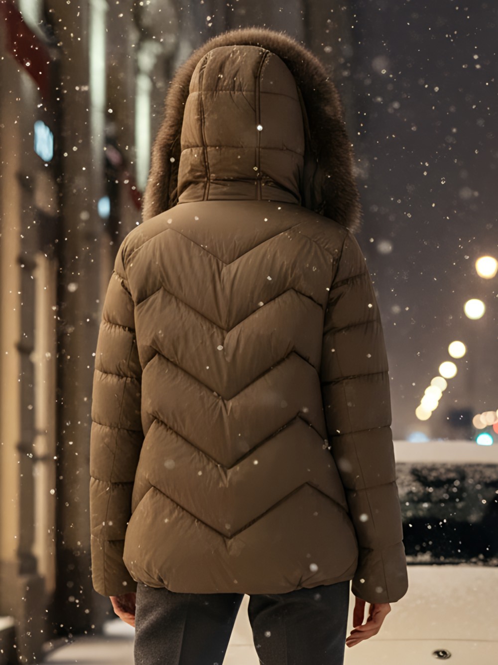 Утеплитель плотностью 200 г/м² обеспечивает комфорт при температурах от +5° до -20°C. Роскошный натуральный мех песца обрамляет лицо, создавая неповторимый образ городской леди. Безупречный крой подчеркивает силуэт, оставляя свободу движений.