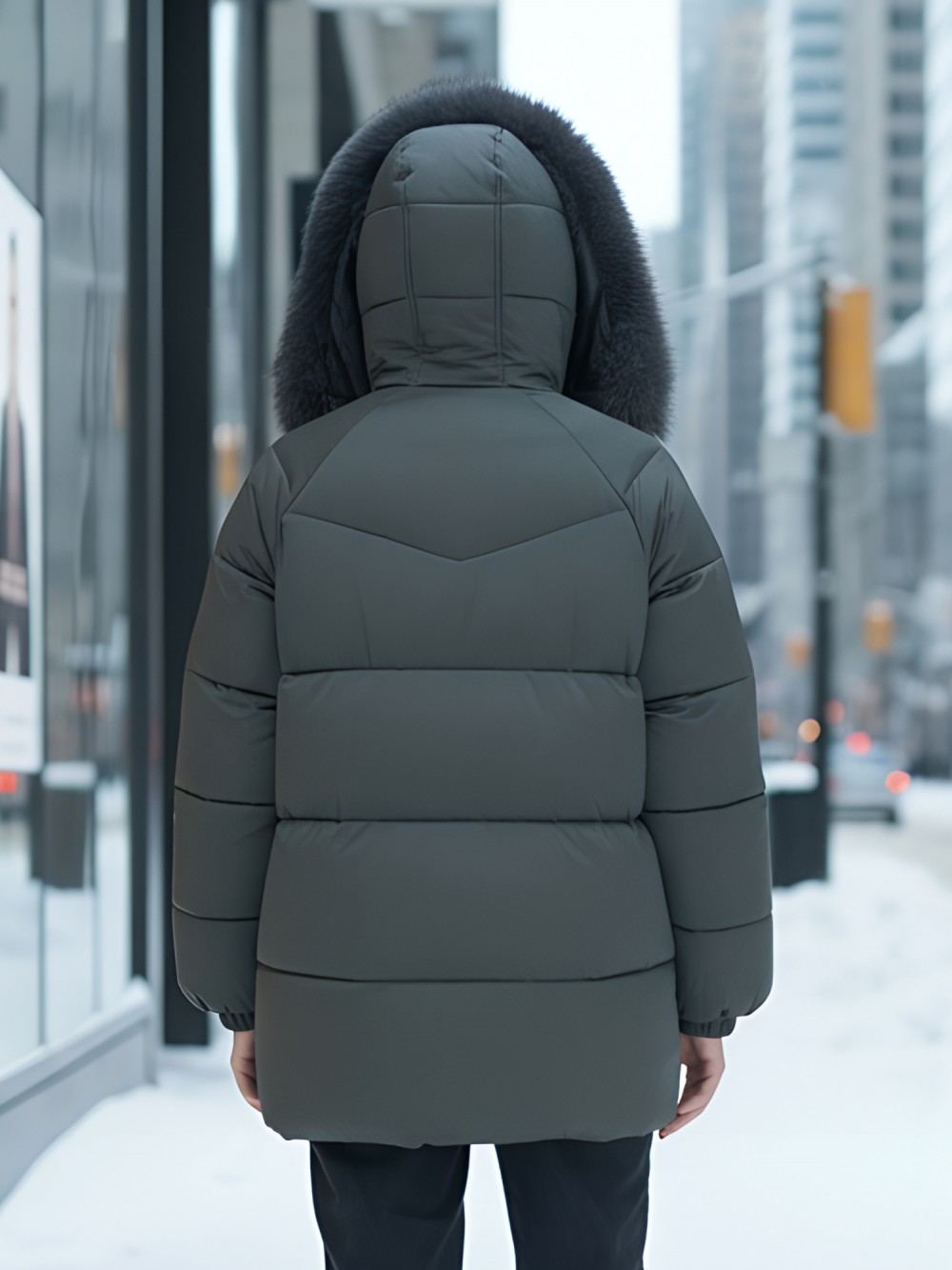 Четыре трендовых оттенка 2025 года – глубокий черный, благородный коричневый, элегантный бежевый и загадочный темно-зеленый – идеально гармонируют с роскошным мехом песца. Удлиненный силуэт до колена в сочетании с прямым кроем создает безупречные пропорции, делая фигуру более стройной.