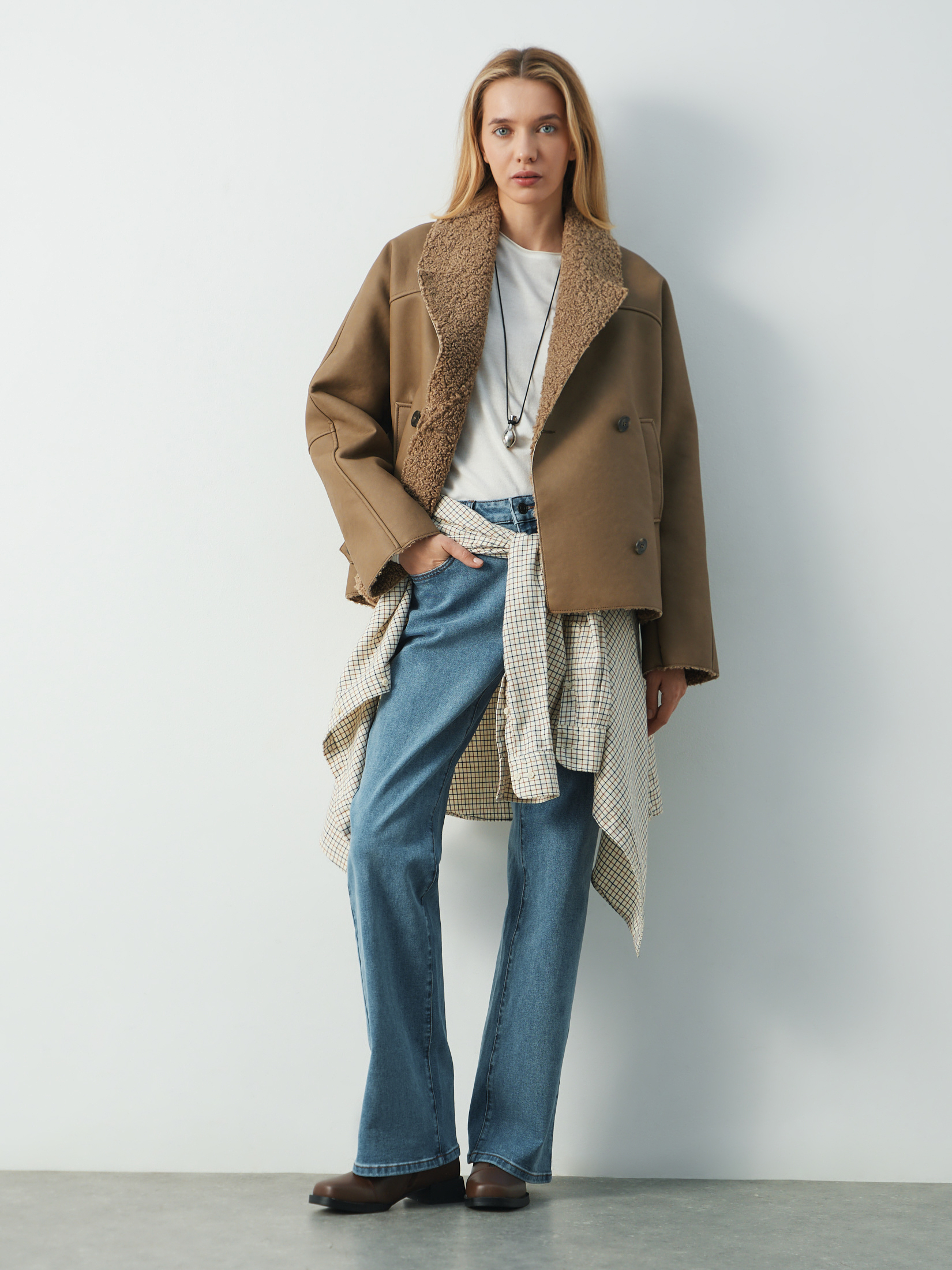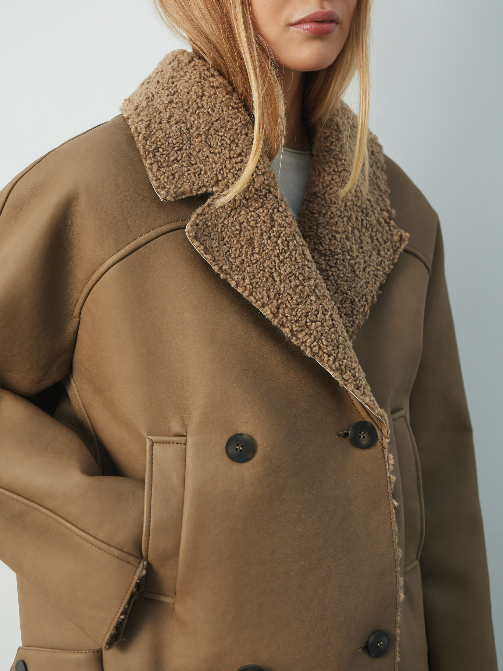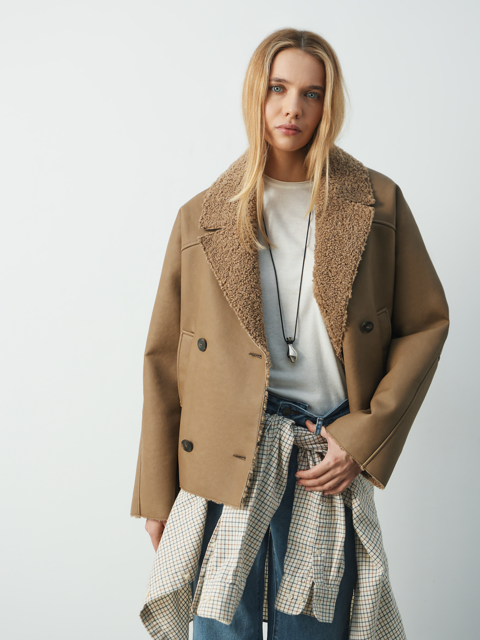 Женская дубленка MAISON DAVID 4931611, бежево-коричневый