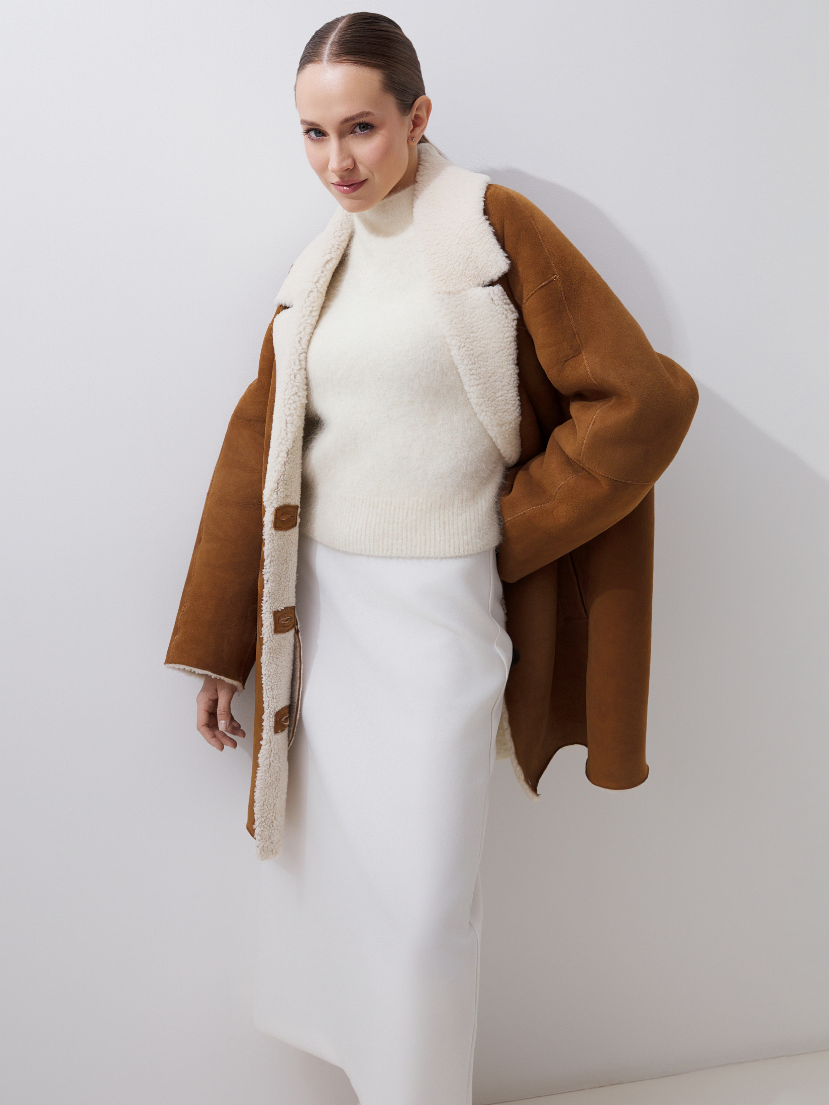 Женская дубленка MAISON DAVID 4463405, коричневый