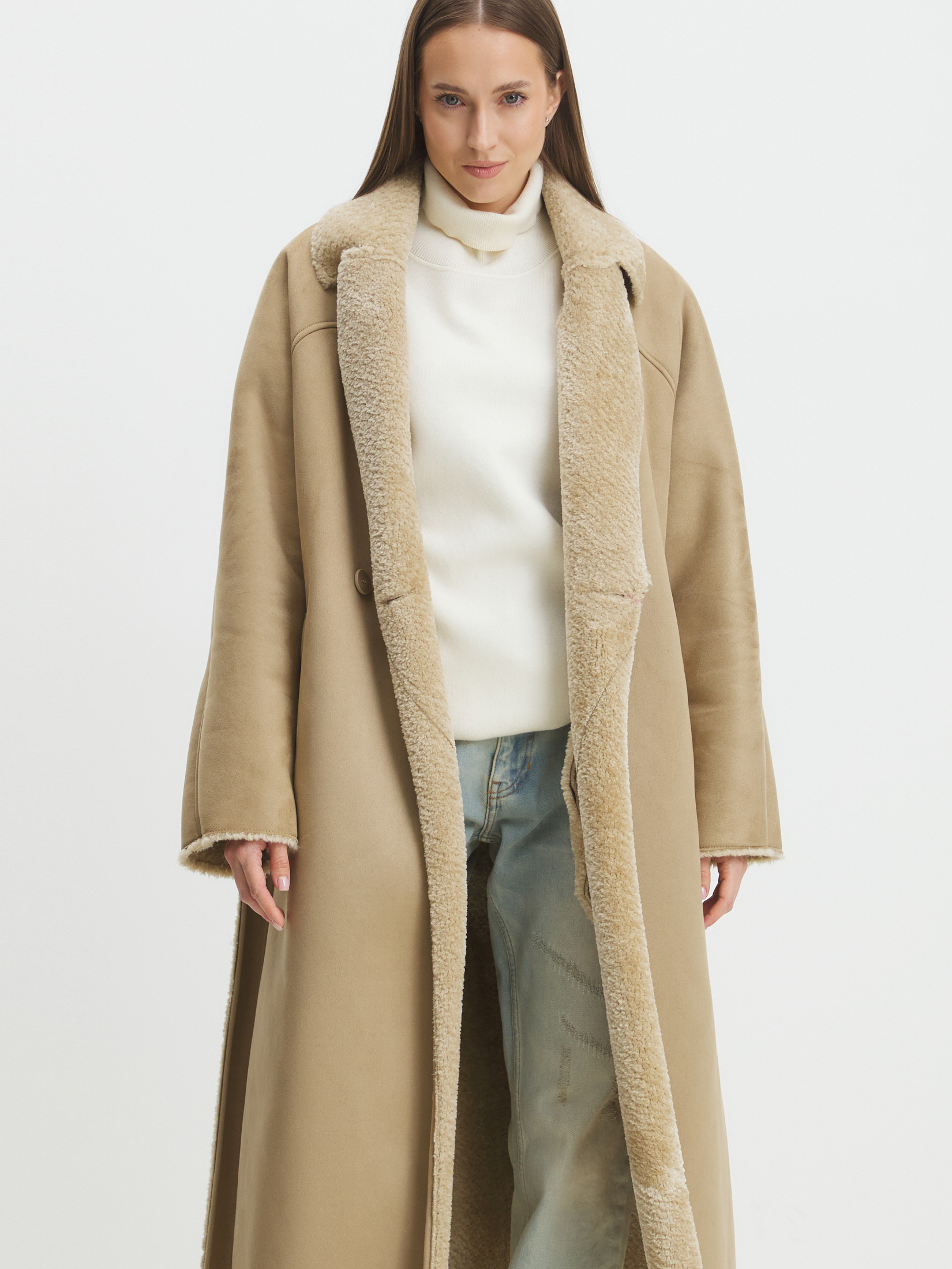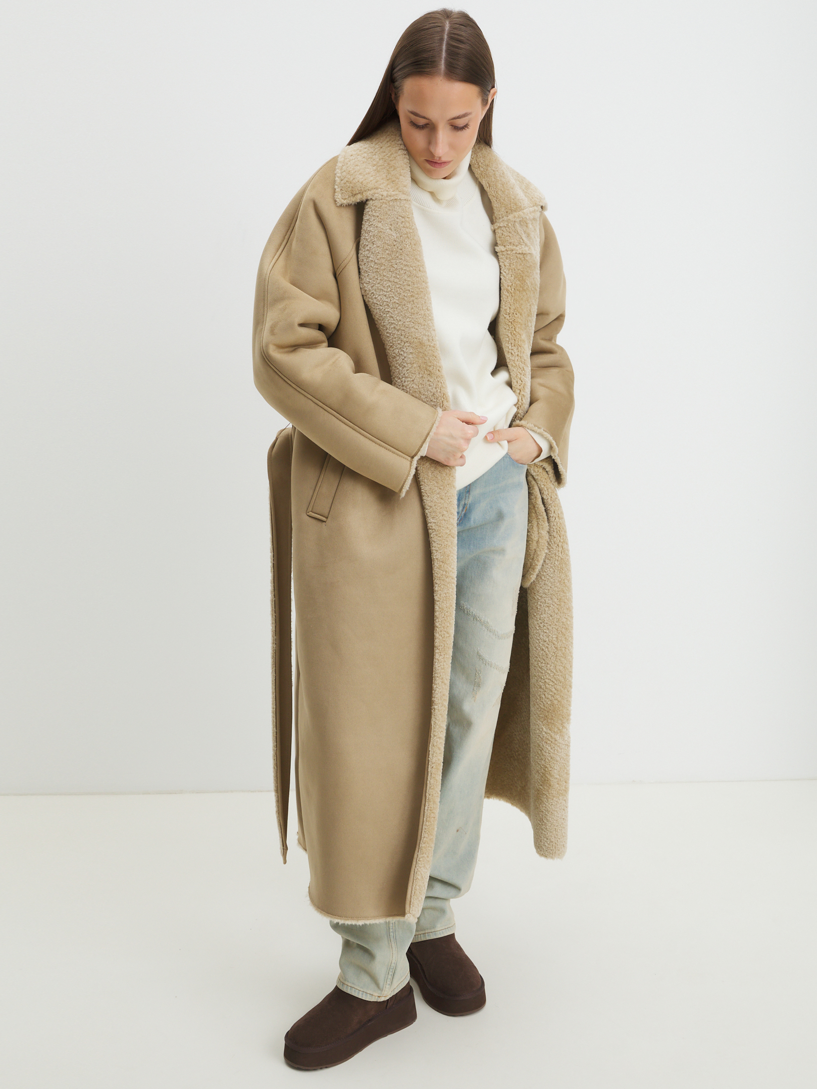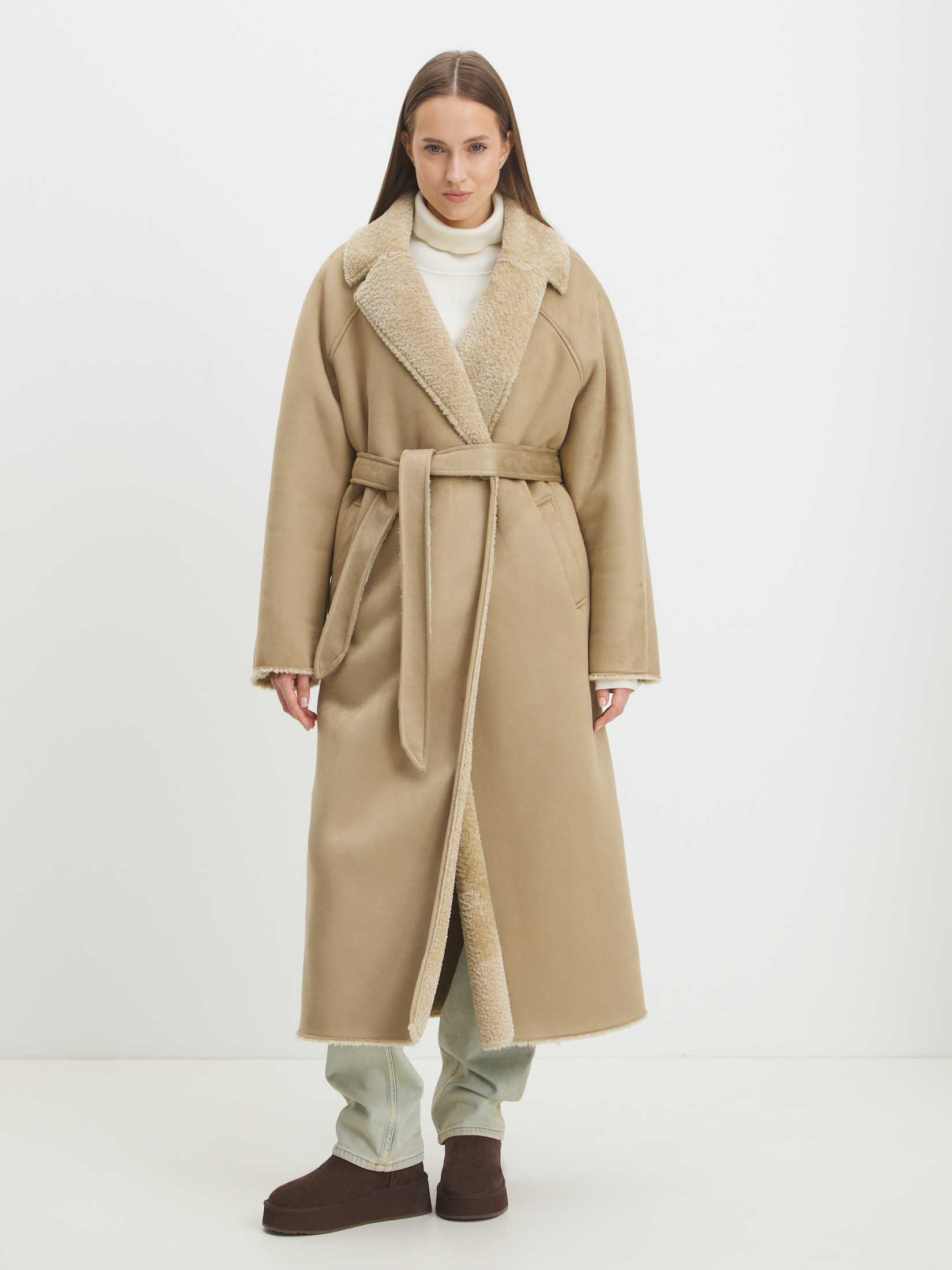 Женская дубленка MAISON DAVID 4557799, зеленовато-бежевый