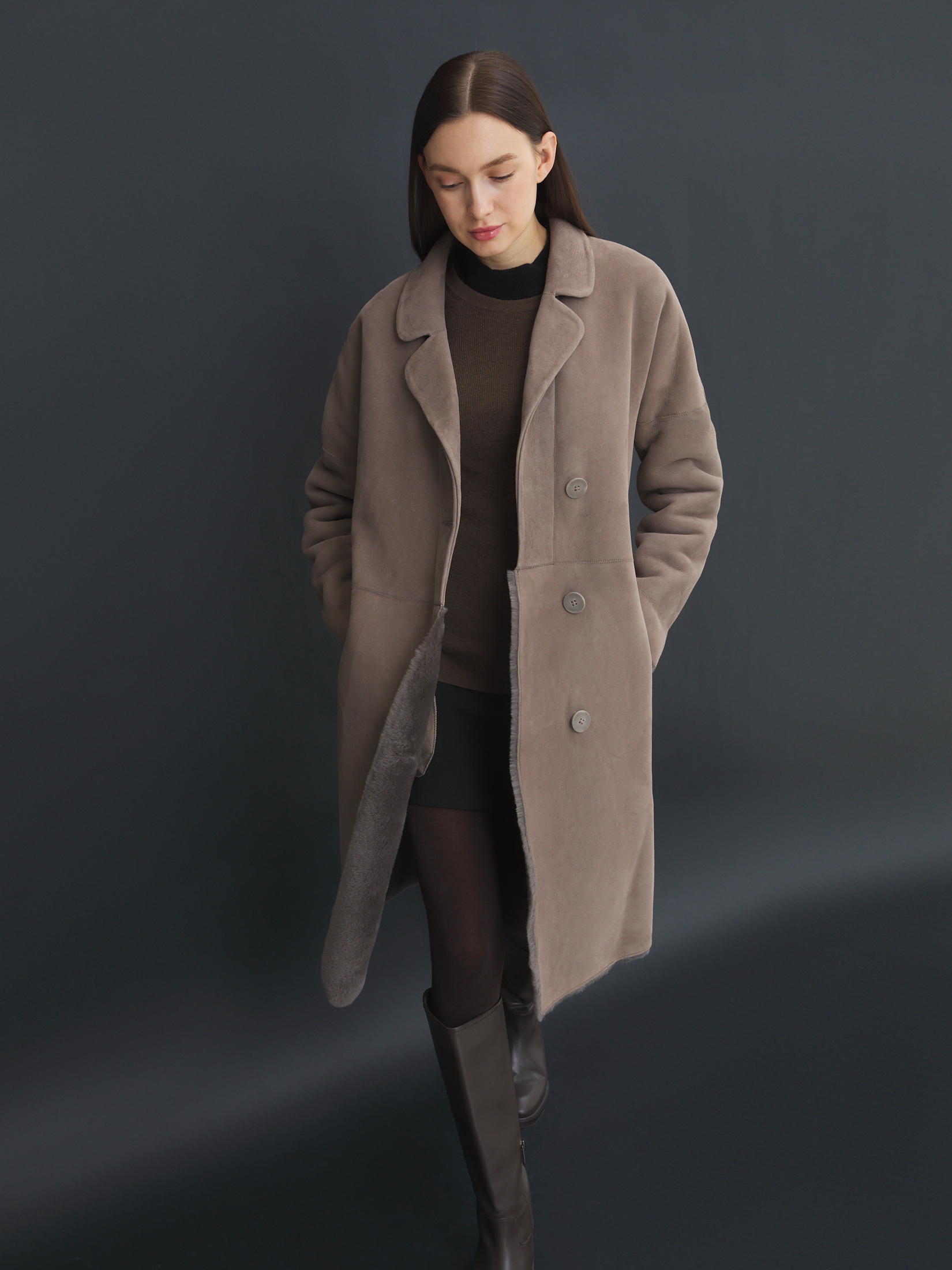 Женская дубленка MAISON DAVID ladies coat 4062772, серо-коричневый