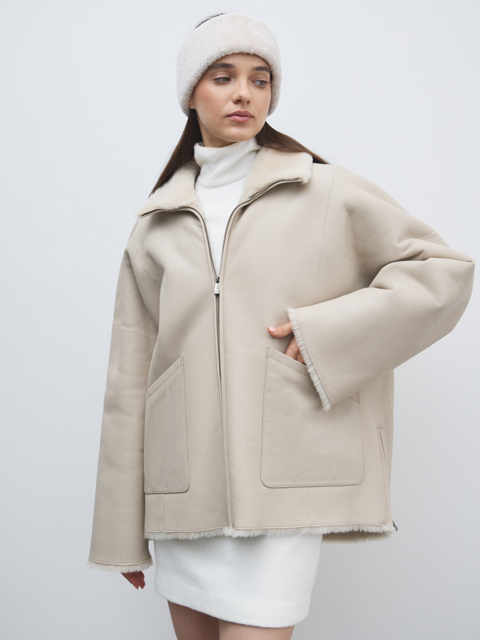 Женская дубленка MAISON DAVID 4795597, серо-бежевый