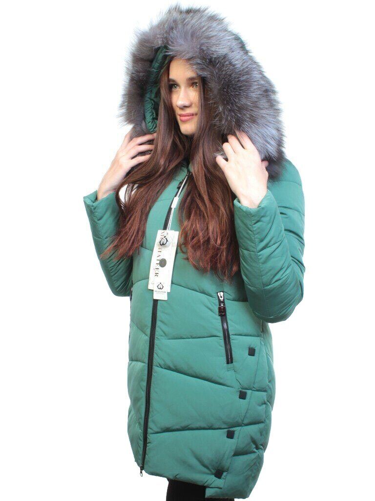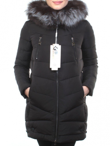 Пальто зимнее женское (холлофайбер, натуральный мех чернобурки)