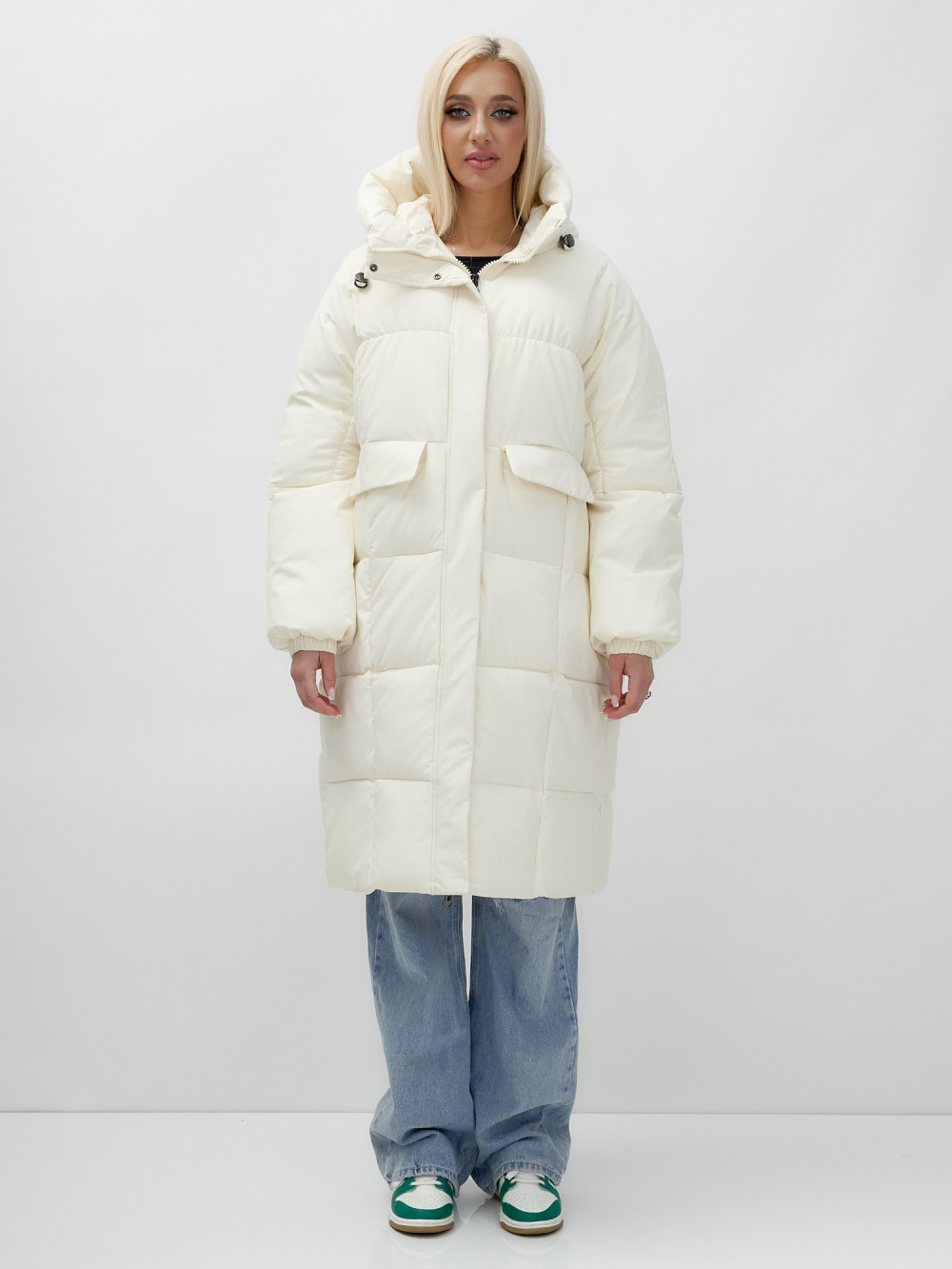 Куртка летучая мышь женская с капюшоном зимняя бежевого цвета 9621B