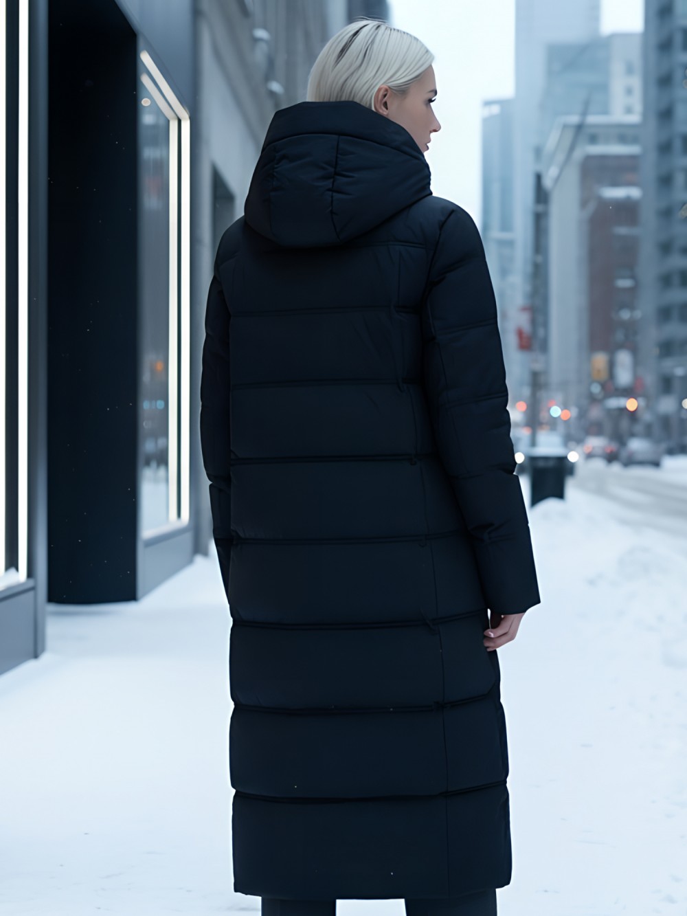 — Несъемный капюшон с фиксатором: Защищает от непогоды и надежно удерживается на месте, добавляя вашему образу стильный акцент.