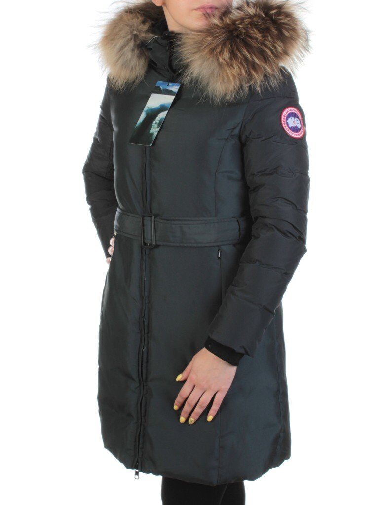 YW-17013 DK. GRAY Пальто женское зимнее (био-пух, натуральный мех лисицы)