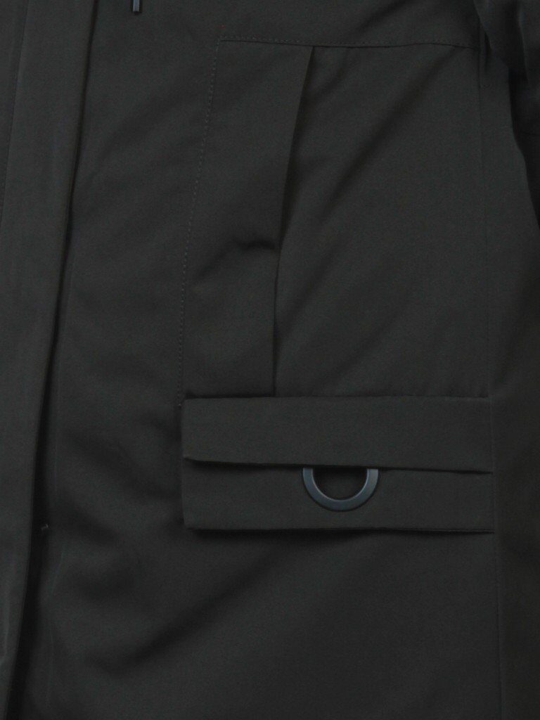 Воротник стойка. Капюшон несъемный, регулируется шнурком.