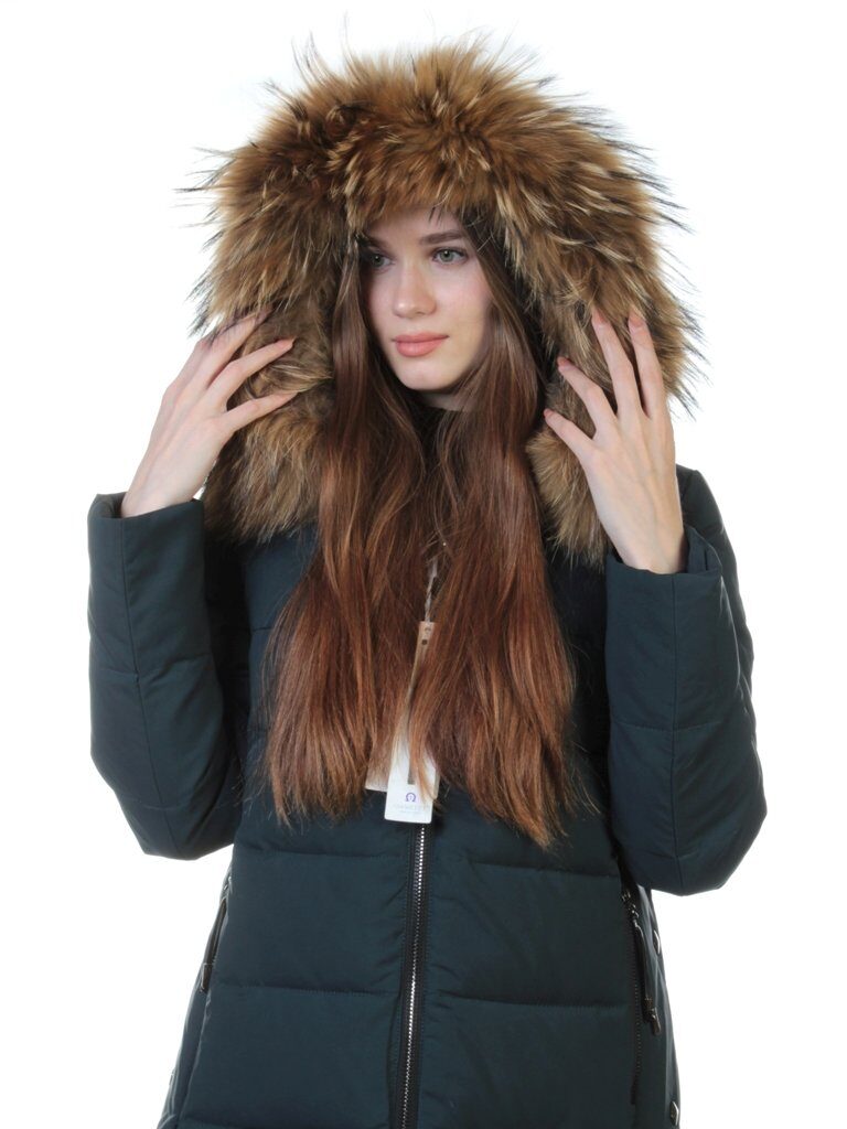 Пальто зимнее женское (холлофайбер, натуральный мех енота)