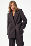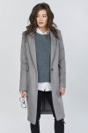 • Особенности: Пальто прямого силуэта из пальтовой ткани на подкладке. Детали: отложной воротник с острыми углами, втачной широкий рукав,  накладные карманы по переду, шлица в среднем шве спинки. Двубортная застежка на петли-пуговицы.