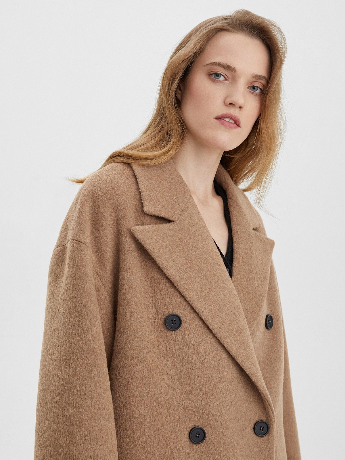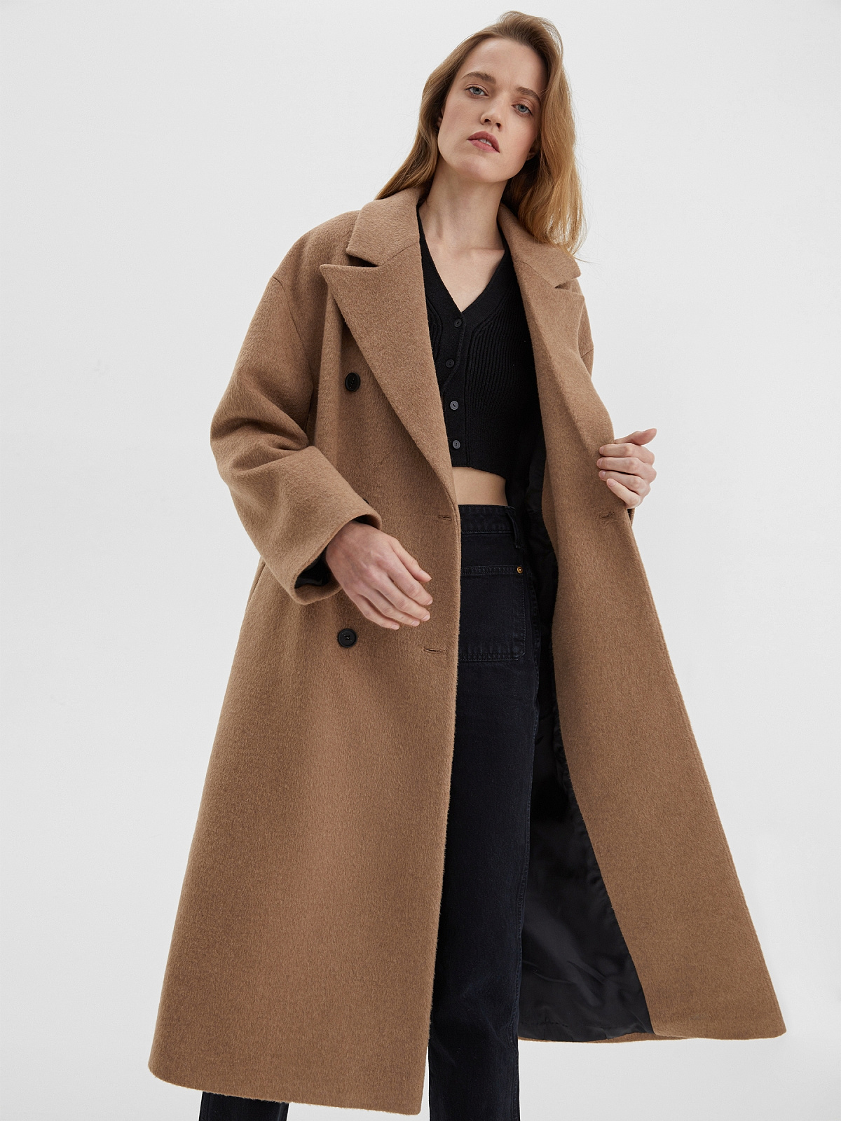 10980р13725рПальто А-силуэта двубортное удлинённое, коричневый