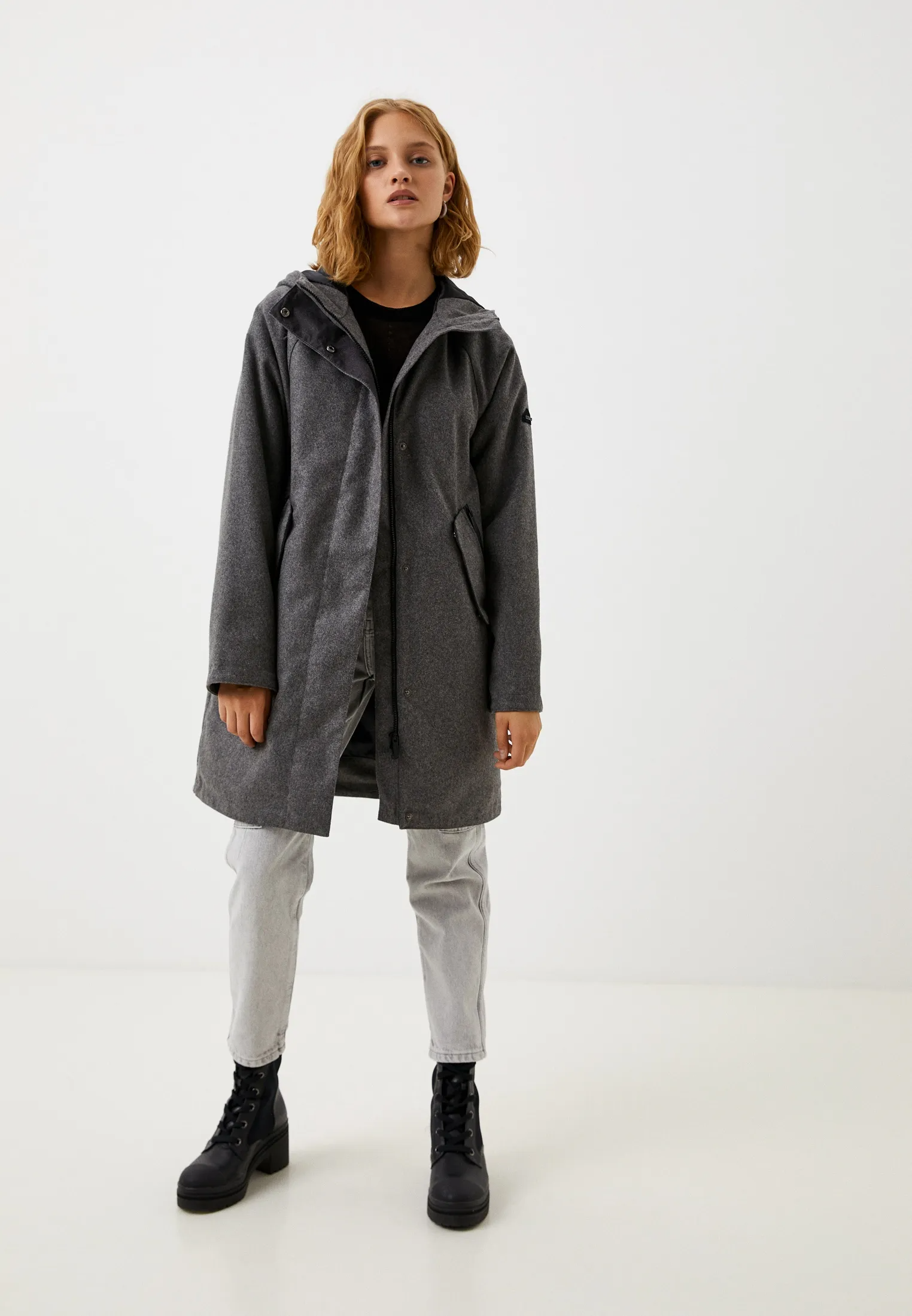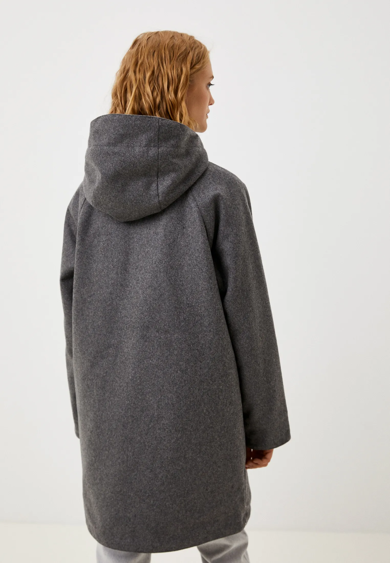 Демисезонное пальто для женщин из сукна, А - образного силуэта, с рукавом покроя реглан. Пальто с втачным капюшоном. Центральная молния закрыта цельнокроеной планкой на потайных кнопках. Подкладка из шелка настегана на утеплитель. 4 наружных кармана различной конфигурации. Рассчитана на температуру от 0 до +15.