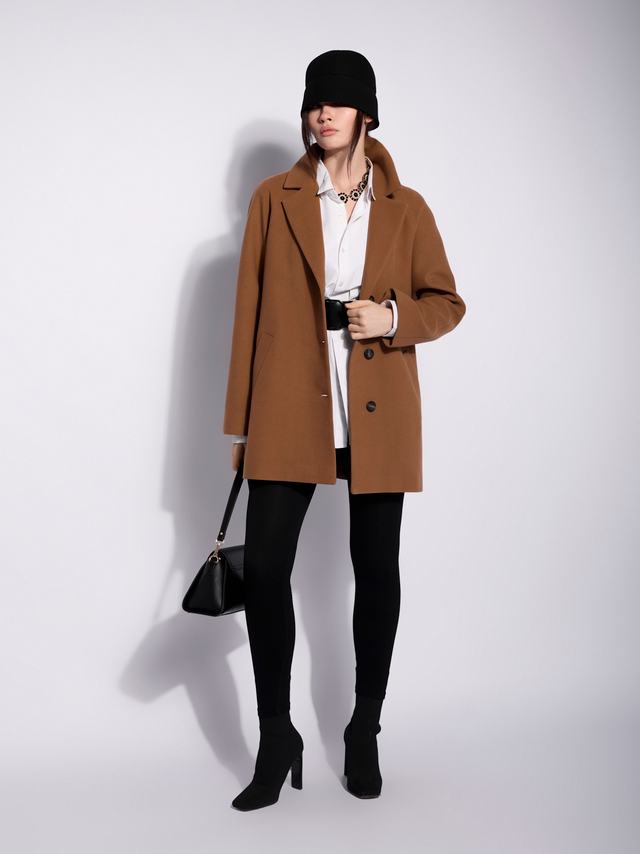 Изделие сочетает в себе крой классического пальто и трендовую короткую длину. Длина в 80 см выдерживает идеальный баланс между комфортом движения и элегантностью.