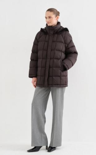 Классическая городская куртка в минималистичном концепте, но с интересной деталью. Модель украшает изящный капюшон из меха норки, напоминающий легкое пушистое кружево. Накиньте вместо шапки – и точно не замерзнете. Еще отметим модную квадратную стежку, добавляющую звучанию куртки современные ноты. Для легкости и тепла выбрана плотная непродуваемая ткань с водоотталкивающей пропиткой и отборный гусиный пух и перо в качестве наполнителя. Высокий воротник-стойка и трикотажные манжеты – еще один уровень защиты от холода. 100% полиэстер Подклад: 100% полиэстер Наполнит: 90% пух, 10% перо