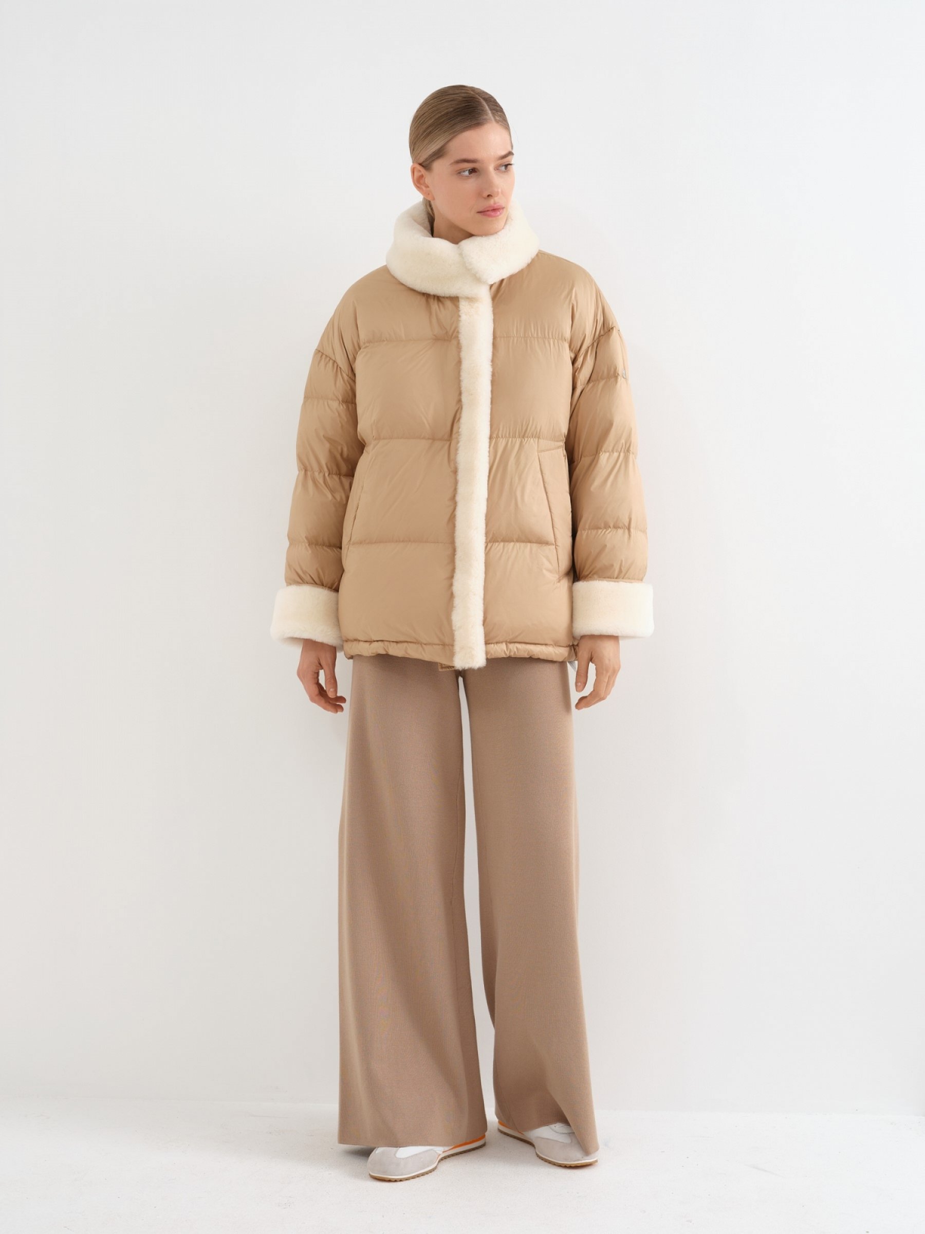 Пуховая куртка с контрастной отделкой пришивным мехом мутона, отсылающей к дубленке. Идеальна для автоледи и женщин, в жизни которых много движения. Модель легко адаптировать под нюансы настроения и погоды. Меховой воротник можно поднять и зафиксировать на кнопки, а рукава подвернуть. Многослойная конструкция, пуховой наполнитель и крупная стежка помогут не замерзнуть даже в сильный мороз. 100% полиэстер Подклад: 100% полиэстер Наполнит: 90% пух, 10% перо