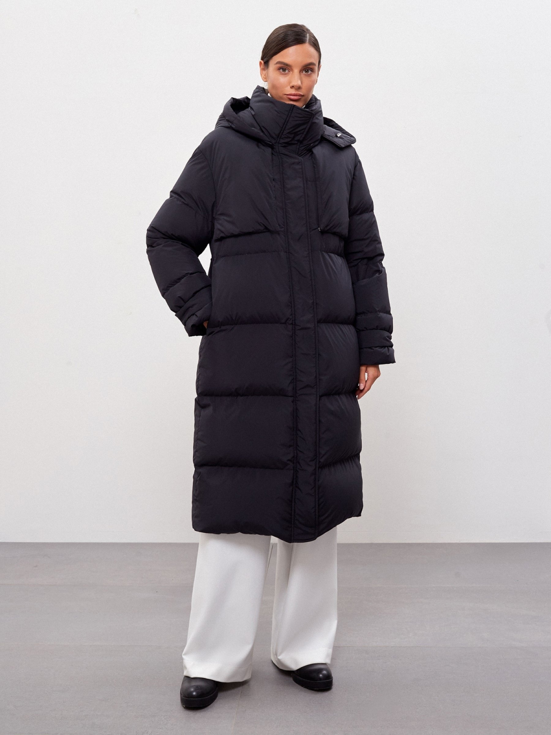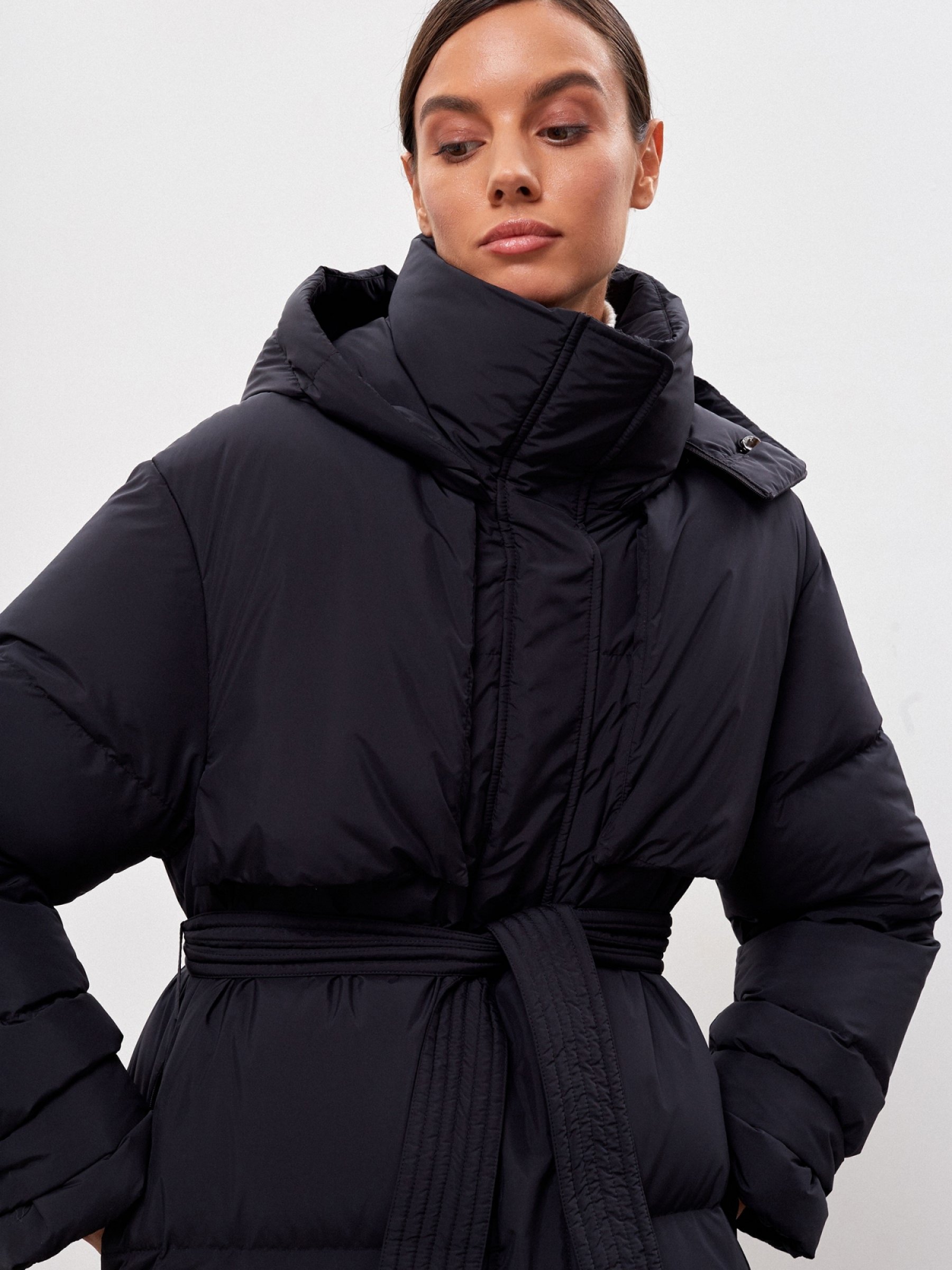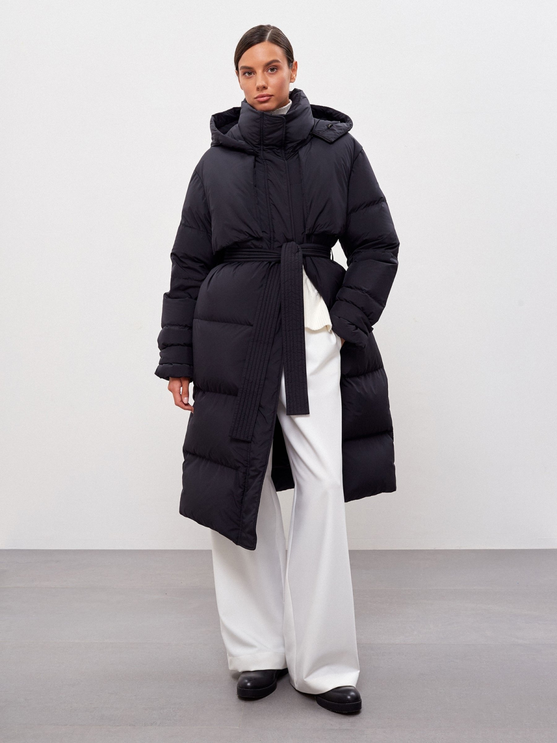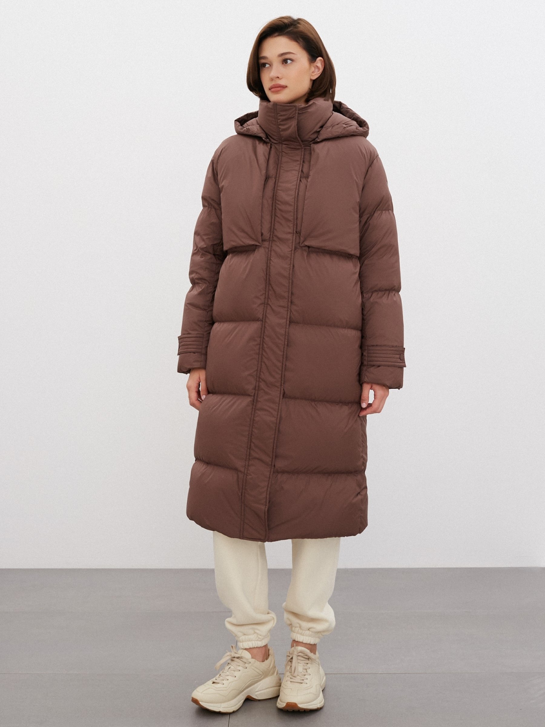 Элегантное пуховое пальто прямого силуэта. Модель с воротником-стойкой и съемным капюшоном застегивается на кнопки и внутреннюю молнию. Линия талии обрамлена широким поясом в тон изделия. Врезные карманы на потайной молнии для удобного хранения. Рукава дополнены трикотажными манжетами для дополнительной защиты от ветра. Акцентные детали в виде объемных геометричных лацканов на груди и горизонтальной трендовой строчки. Модель представлена в 3 трендовых оттенках этого сезона:nero, grey, coffee, которые легко сочетать, как с пастельными оттенками, так и с яркими акцентными деталями.