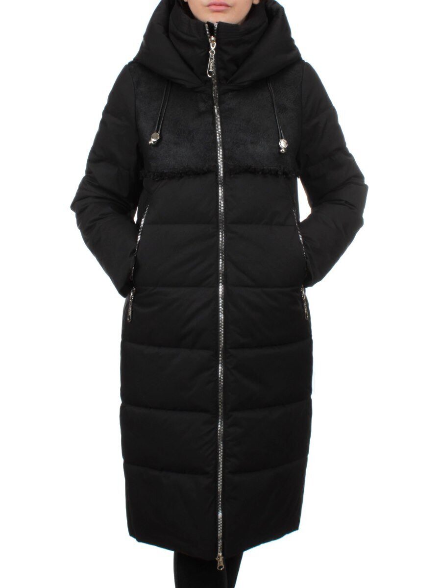 23-636 BLACK Пальто зимнее женское (холлоффайбер 150 гр., искусственная дубленка)