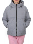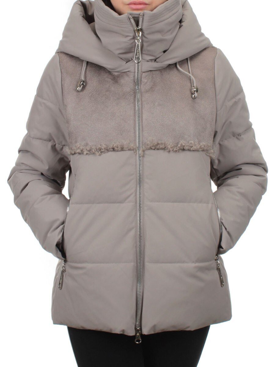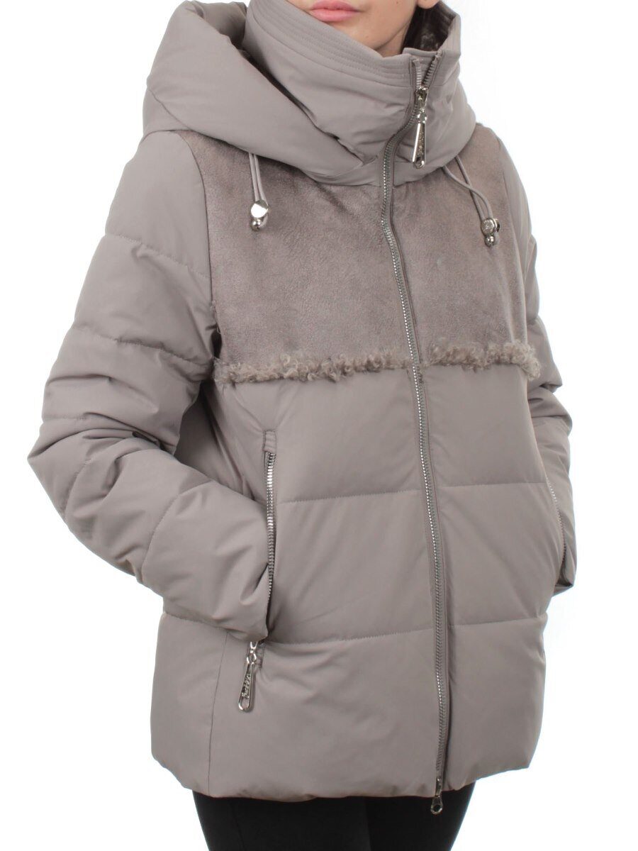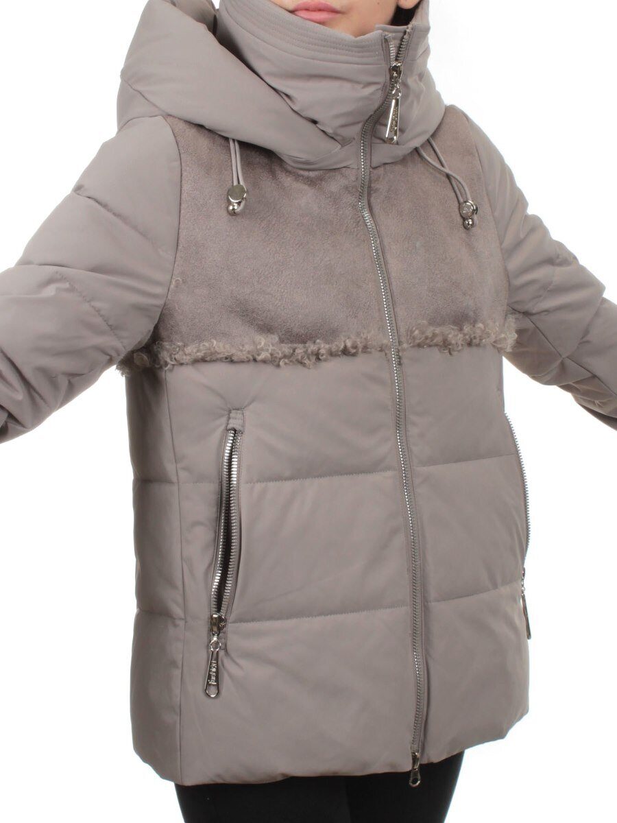23-696 GRAY/BEIGE Куртка зимняя женская (холлоффайбер 150 гр., искусственная дубленка)