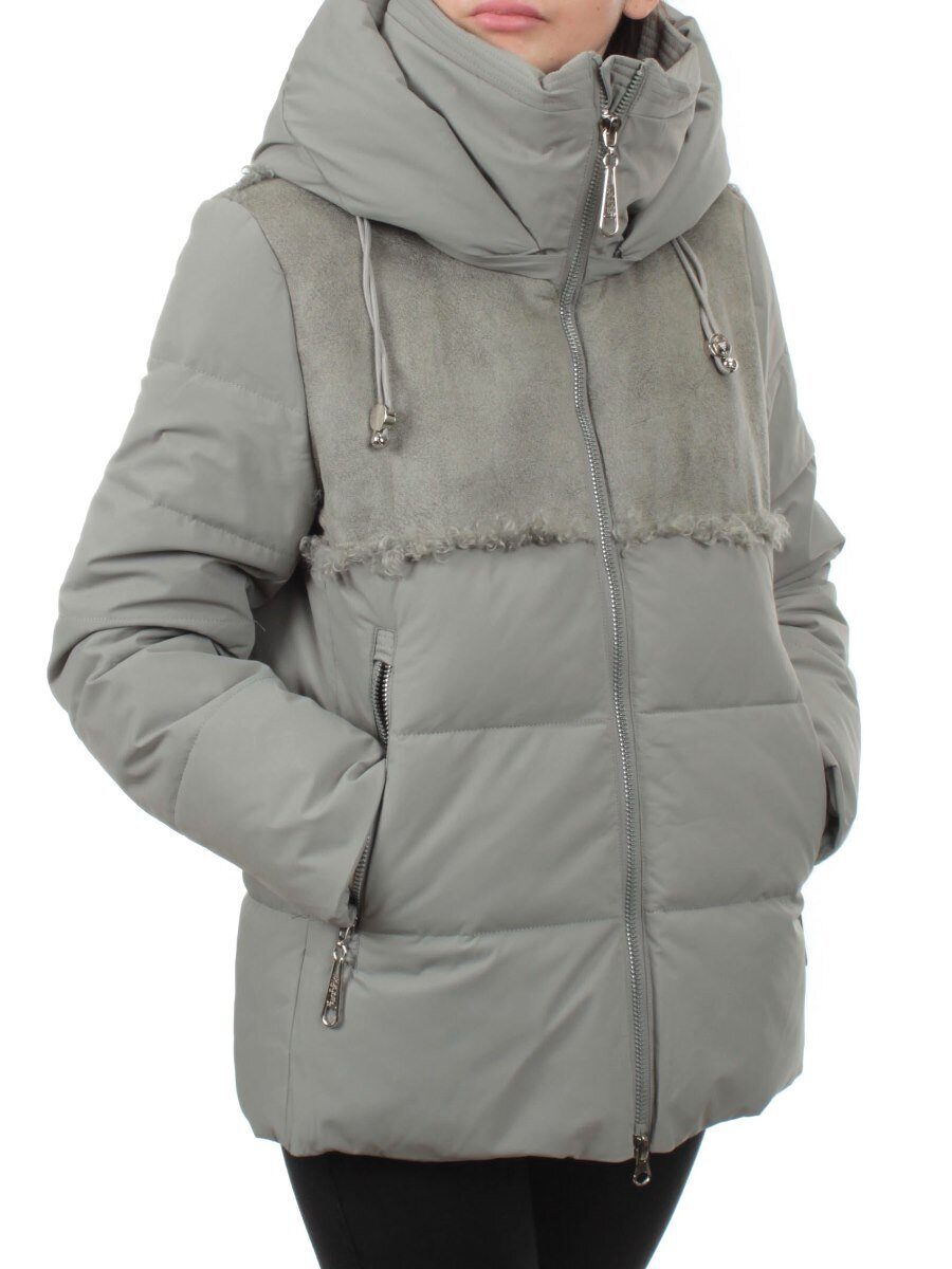 23-696 OLIVE Куртка зимняя женская (холлоффайбер 150 гр., искусственная дубленка)