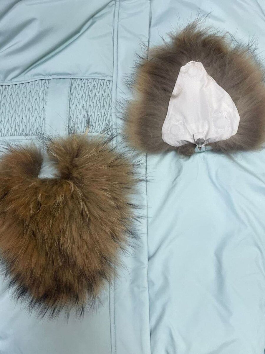 Декоративные накладки на карманах: натуральный мех енота.
