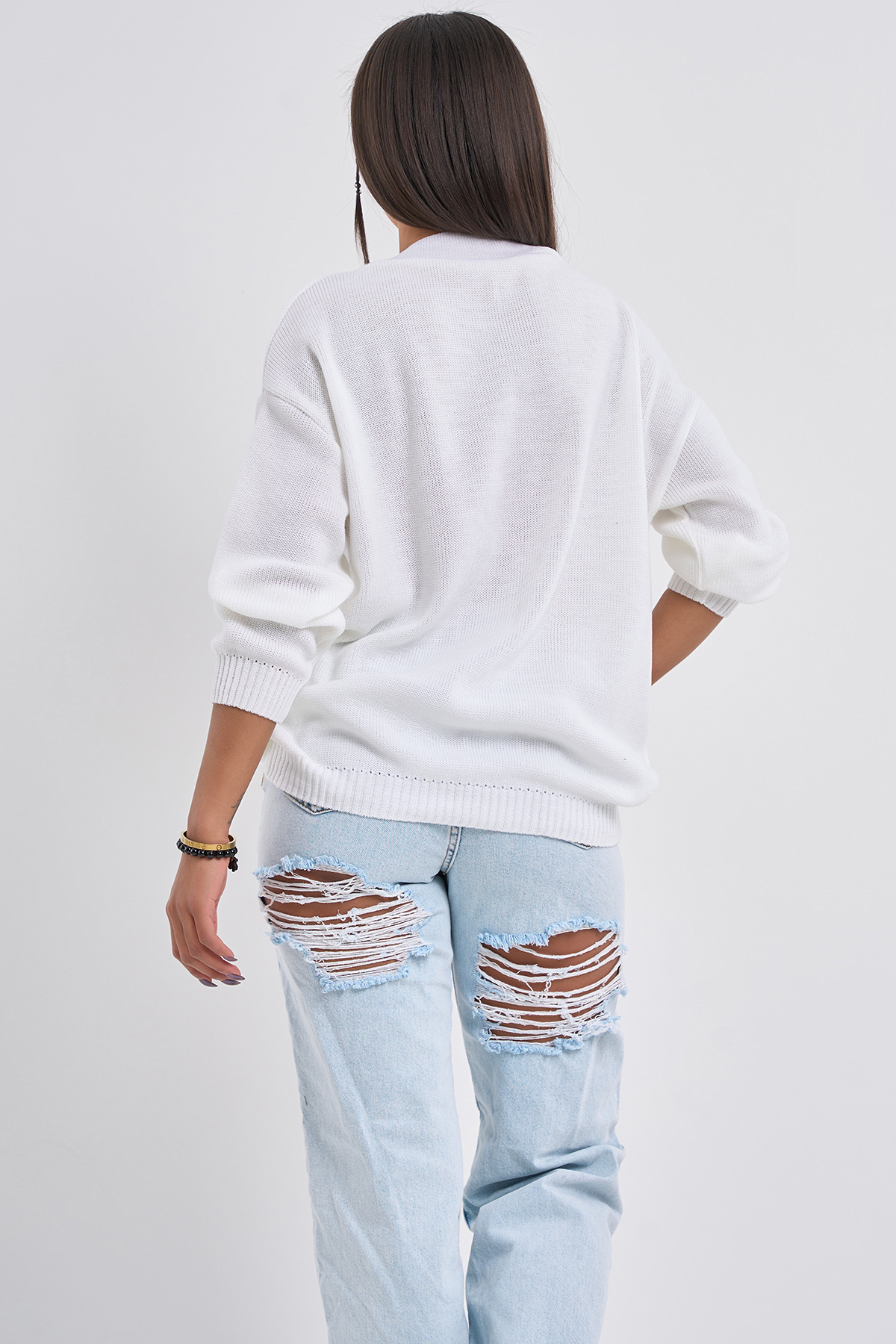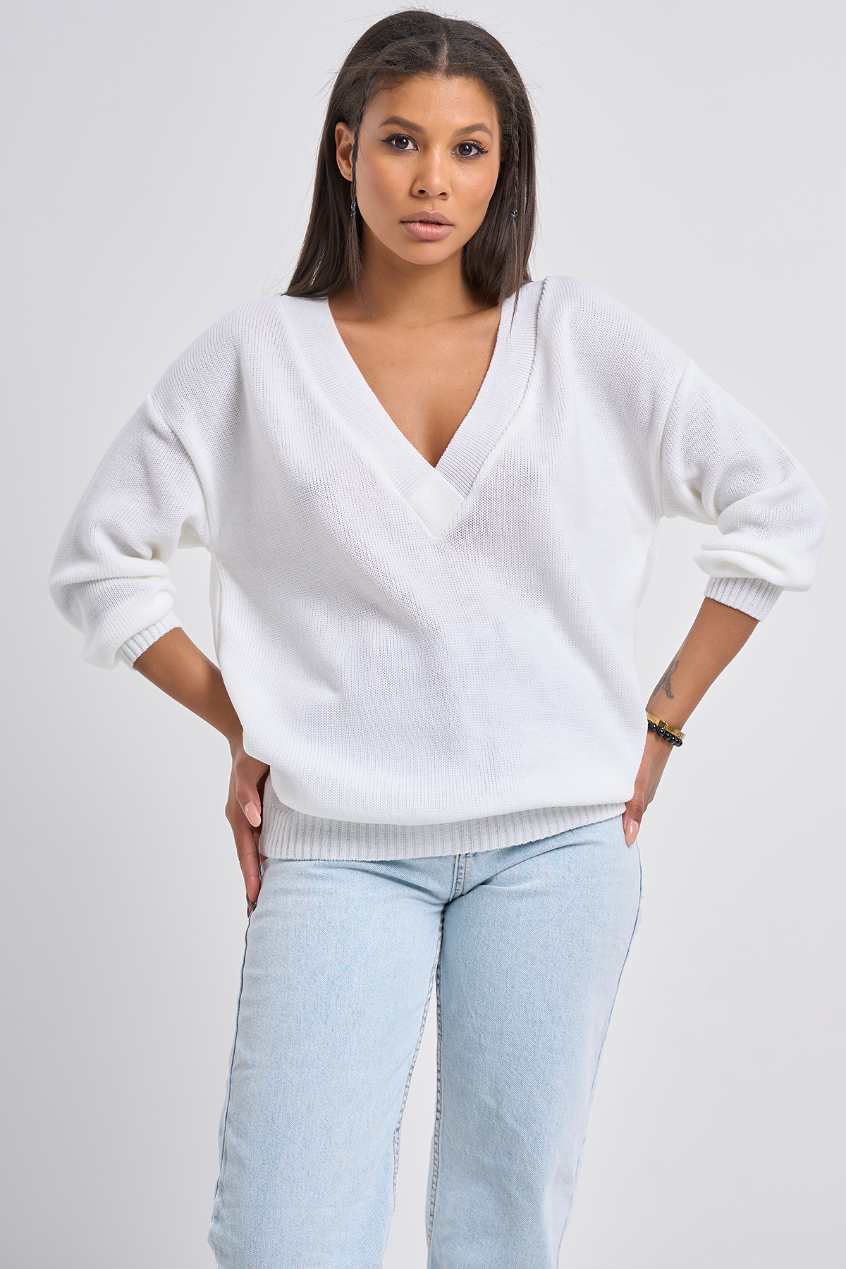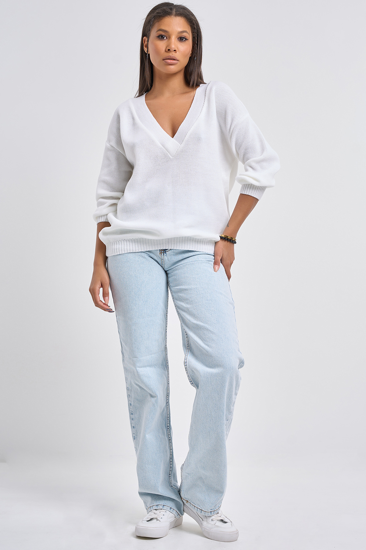 Особенности:  Вязаный джемпер Весна-Лето, свободного силуэта с V-образным вырезом . Низ изделия и рукава оформлены резинкой в рубчик.