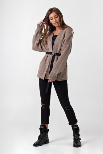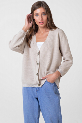 ст. цена1969руб.! Джемпер вязаный оверсайз на пуговицах из хлопка бежевый меланж
