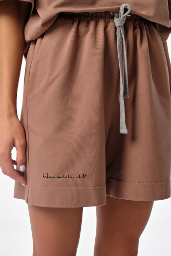 ст. цена2882руб.! Костюм летний спортивный оверсайз с шортами из хлопка молочный шоколад