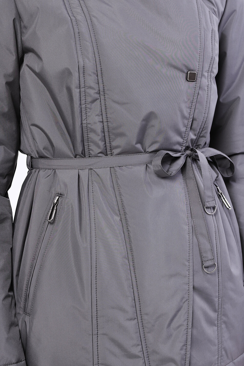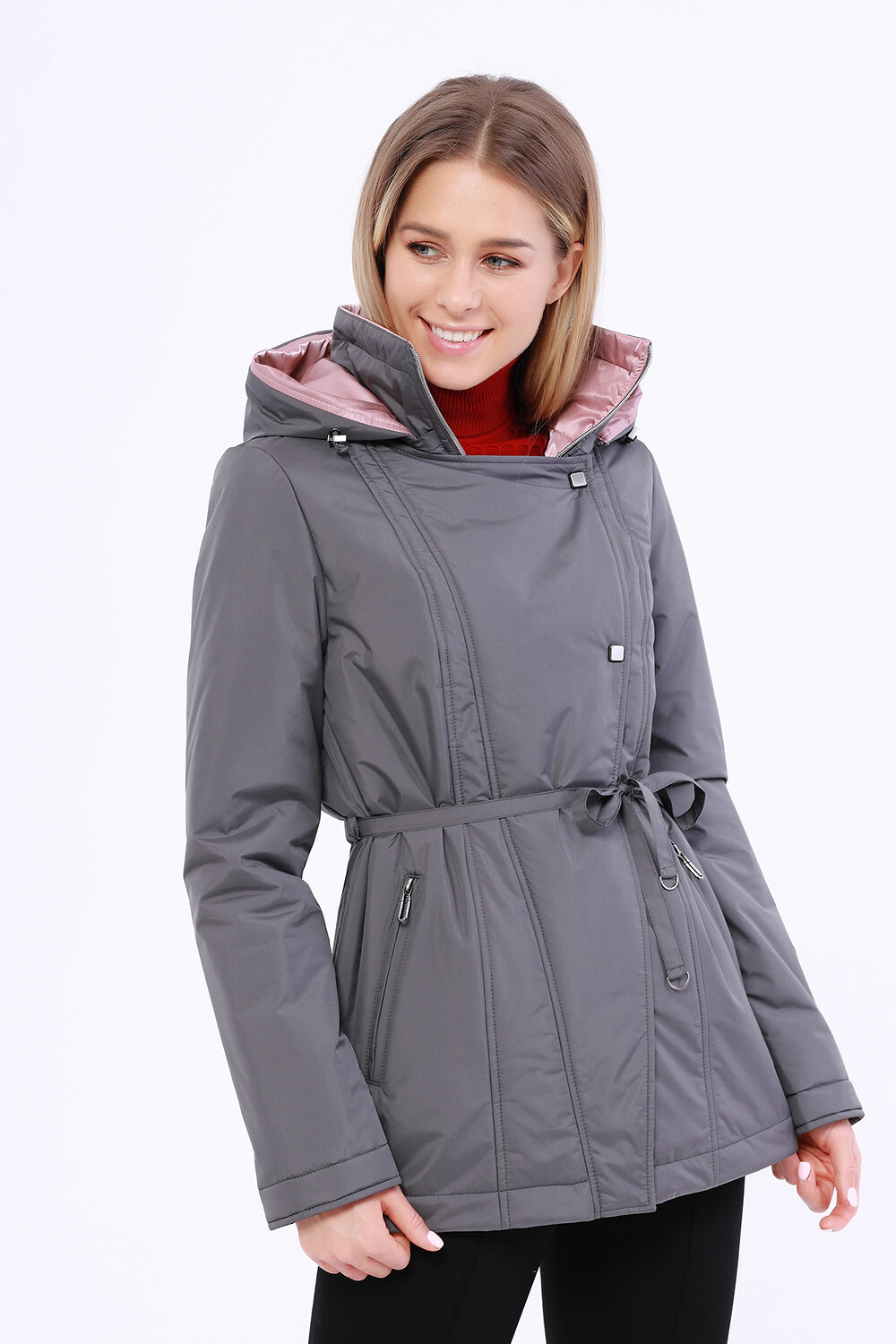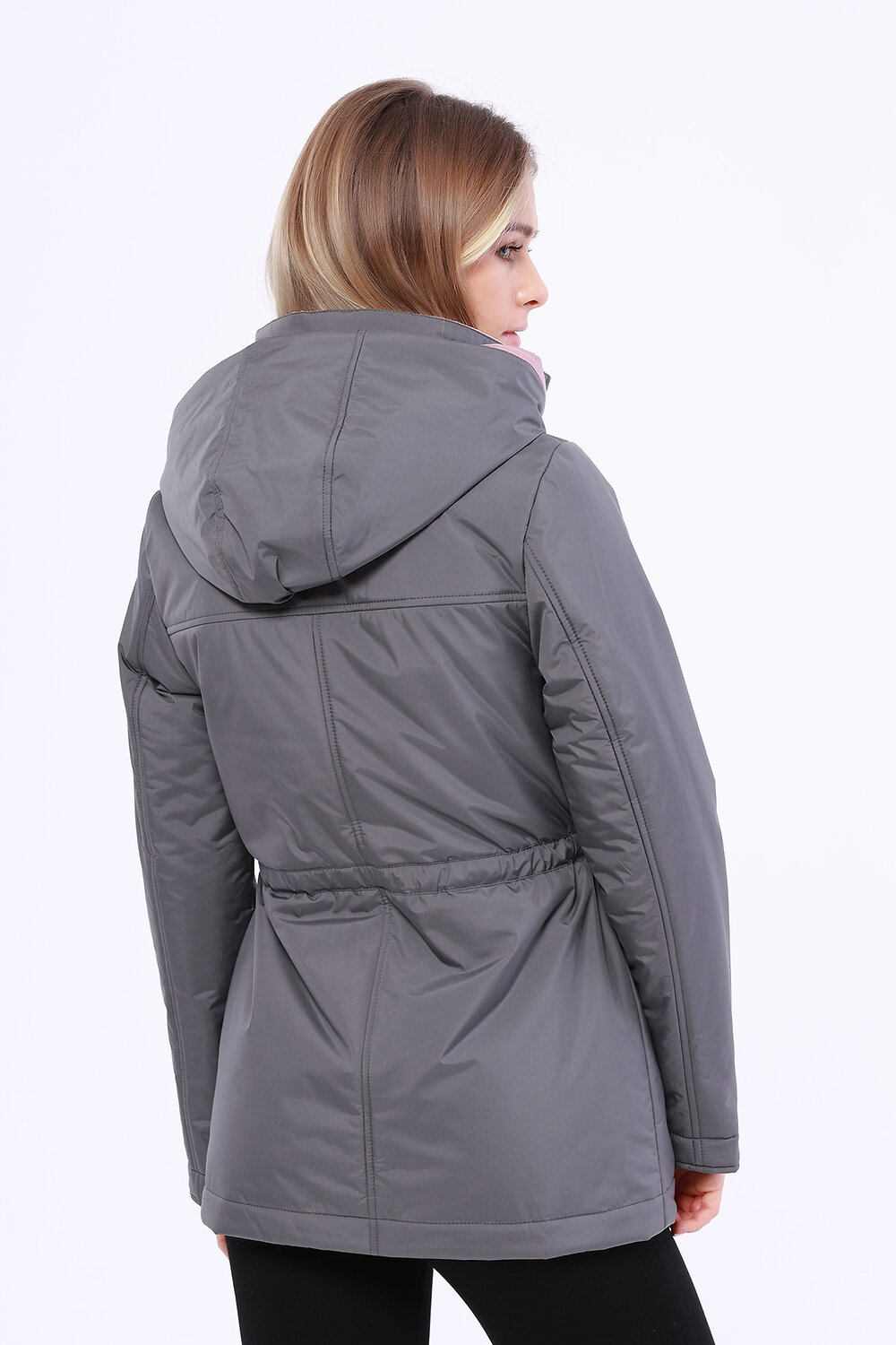 Утеленная куртка с интересной комбинацией двух контрастных тканей . Застежка на молнию и декоративная планка. Объем талии регулируется кулиской - поясом. Капюшон остегивается . Карманы на молнии.