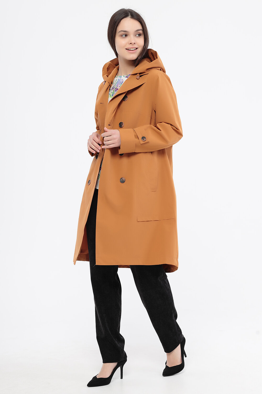 Модный плащ-тренч в спортивном стиле, с капюшоном, российского производства, бренда D'imma . Центральная двубортная застежка на пуговицы.Ткань верха с водоотталкивающей пропиткой (мембрана) , комфортная сетчатая подкладка в цвет основной ткани. Капюшон отстегивается и крепится на кнопки. В наличии широкий размерный ряд, большие размеры.