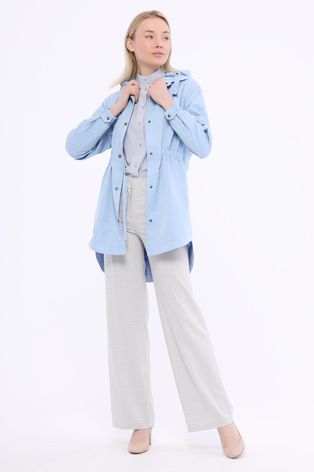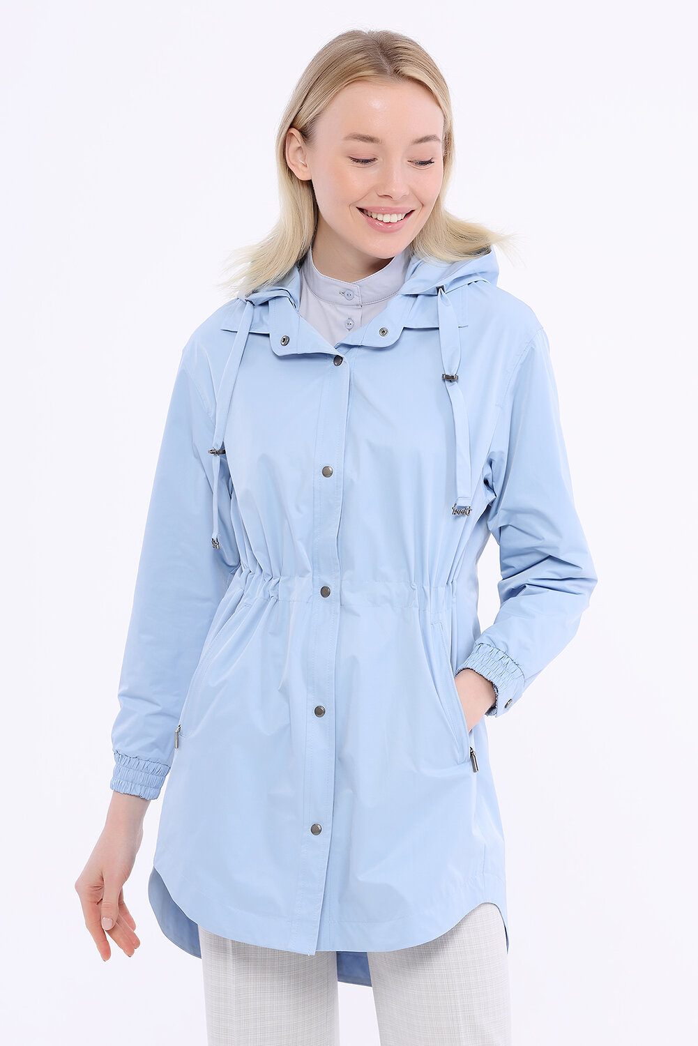 Удлиненная ветровка-парка с капюшоном, российского производства, бренда D'imma . Центральная застежка на кнопки, потайная кулиска на талии. Ткань верха с водоотталкивающей пропиткой, комфортная сетчатая подкладка в цвет основной ткани. Капюшон отстегивается, крепится на кнопки . В наличии широкий размерный ряд, большие размеры.