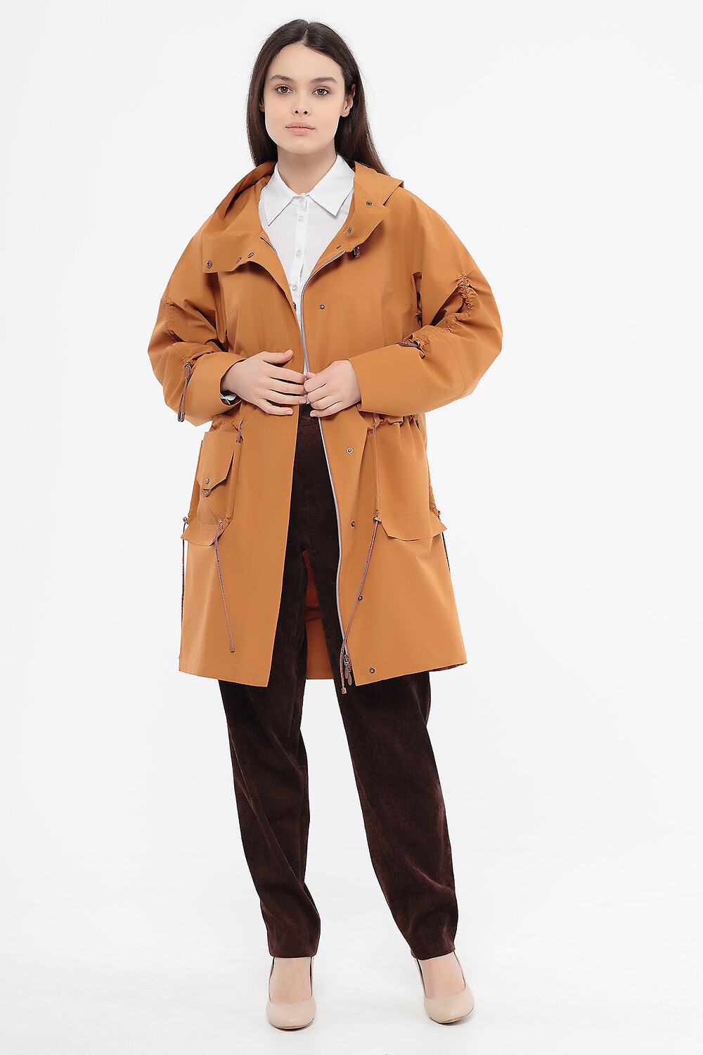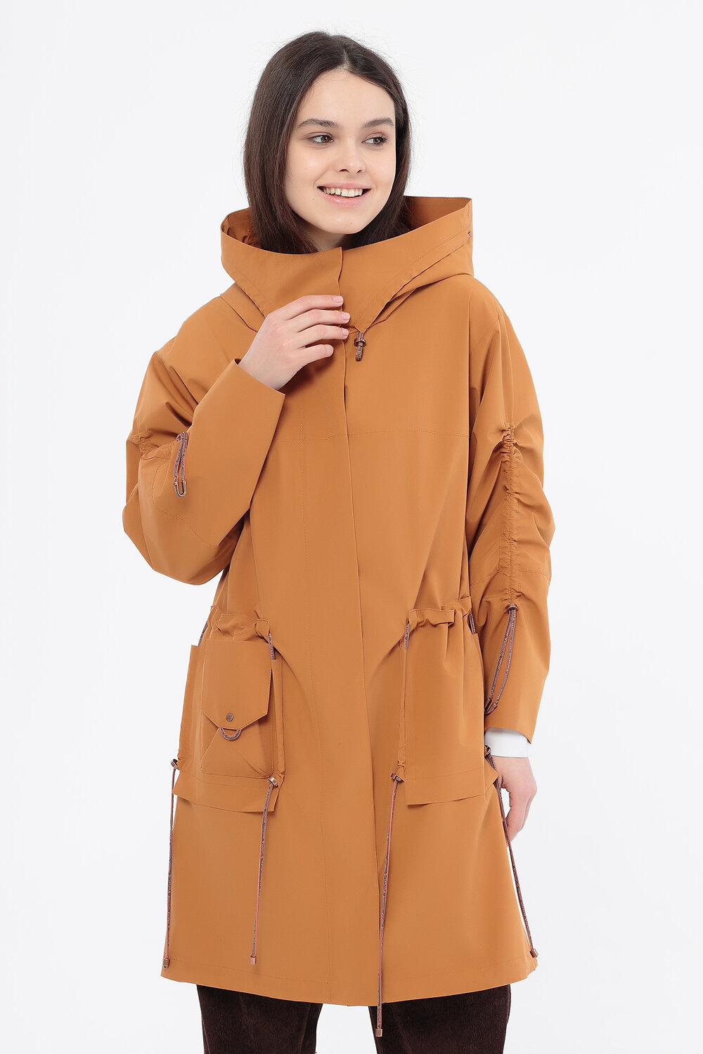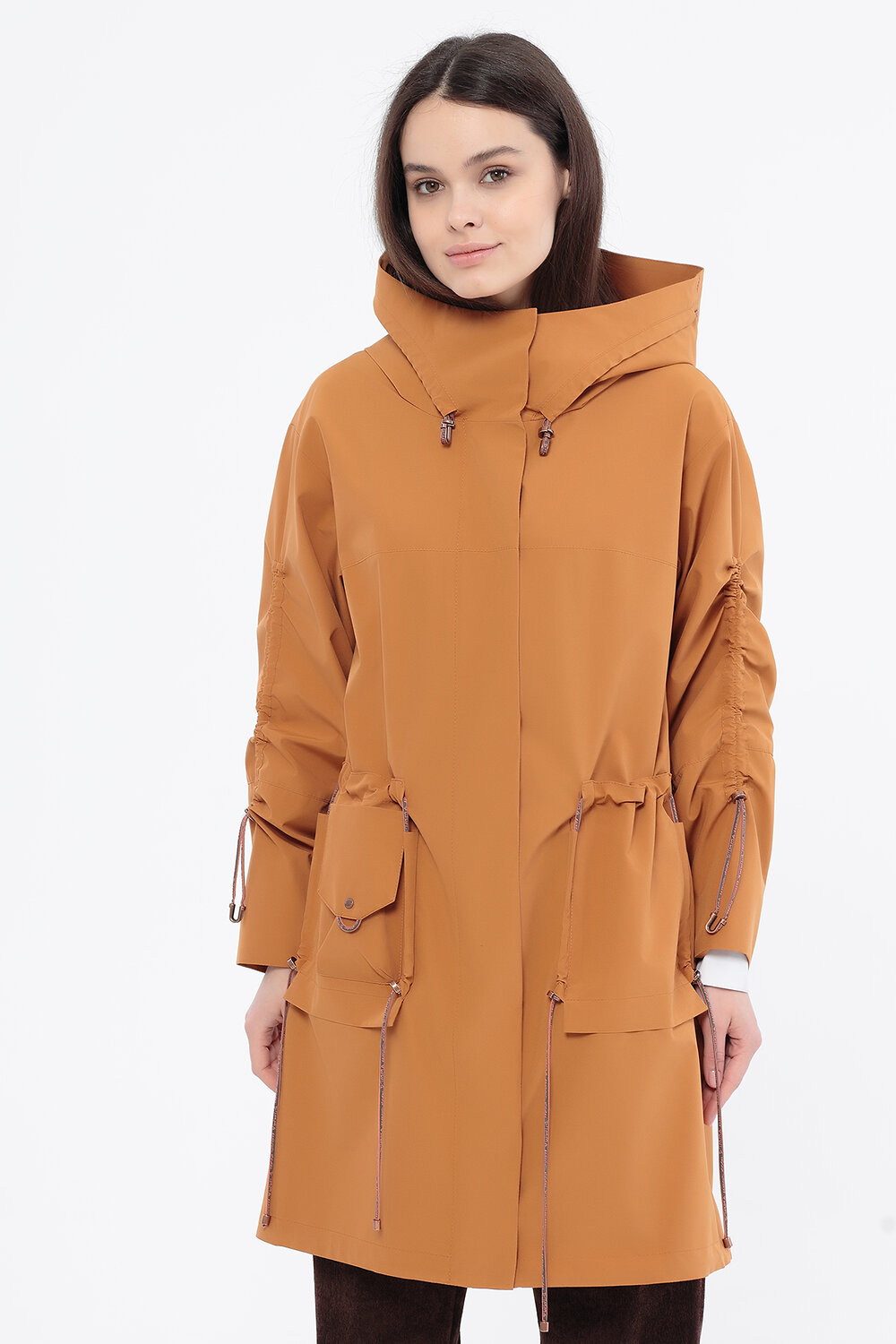 Плащ средней длины, с капюшоном и декоративными карманами, российского производства, бренда D'imma . Центральная застежка на молнию и кнопки.Ткань верха с водоотталкивающей пропиткой (мембрана) , комфортная сетчатая подкладка в цвет основной ткани. Капюшон не отстегивается . Длина рукавов регулируется кулиской. В наличии широкий размерный ряд, большие размеры.