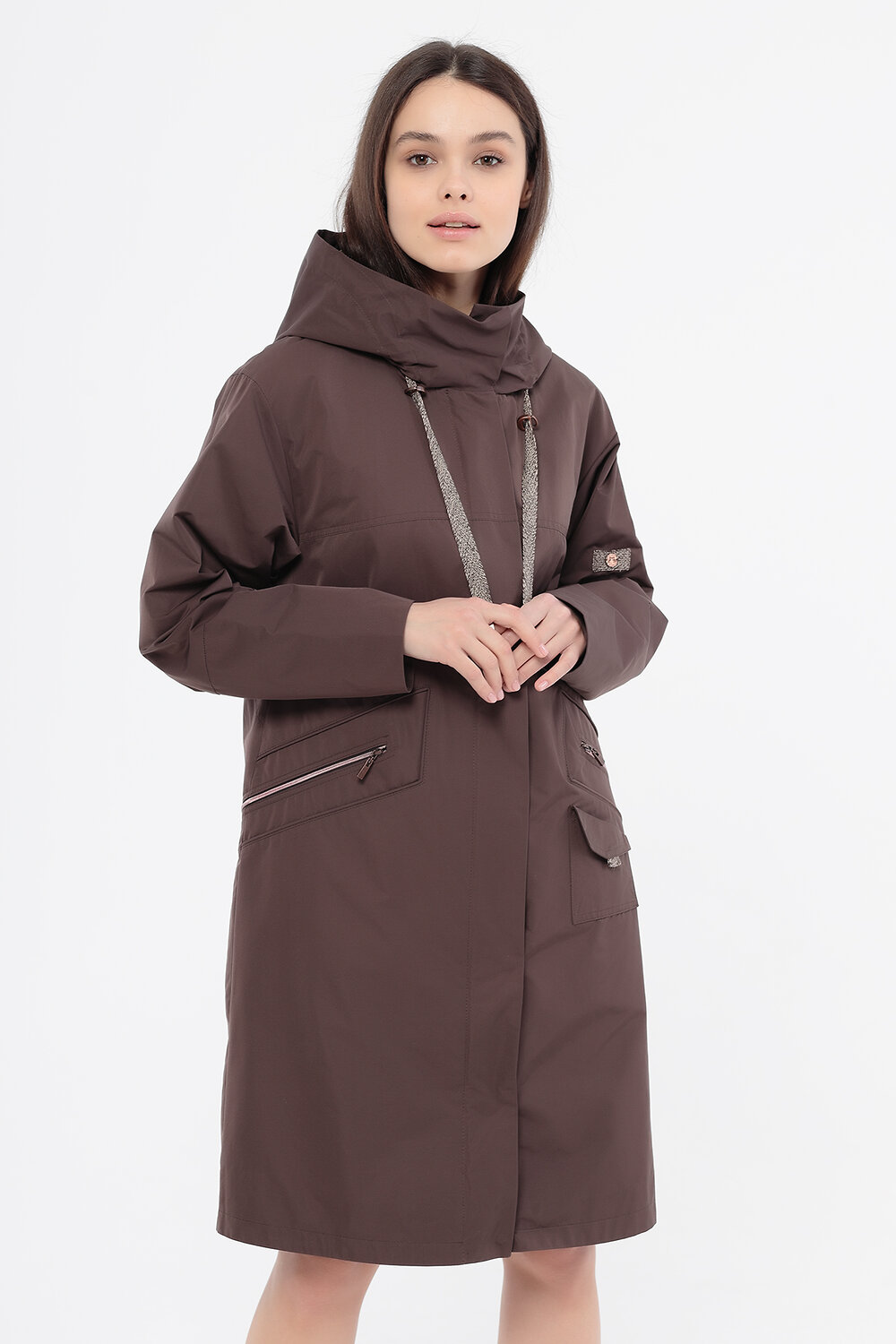 Комфортный плащ-парка с капюшоном, российского производства, бренда D'imma . Центральная застежка на молнию и кнопки, декоративные строчки на спинке. Ткань верха с водоотталкивающей пропиткой, подкладка в цвет основной ткани. Капюшон не отстегивается. В наличии широкий размерный ряд, большие размеры.
