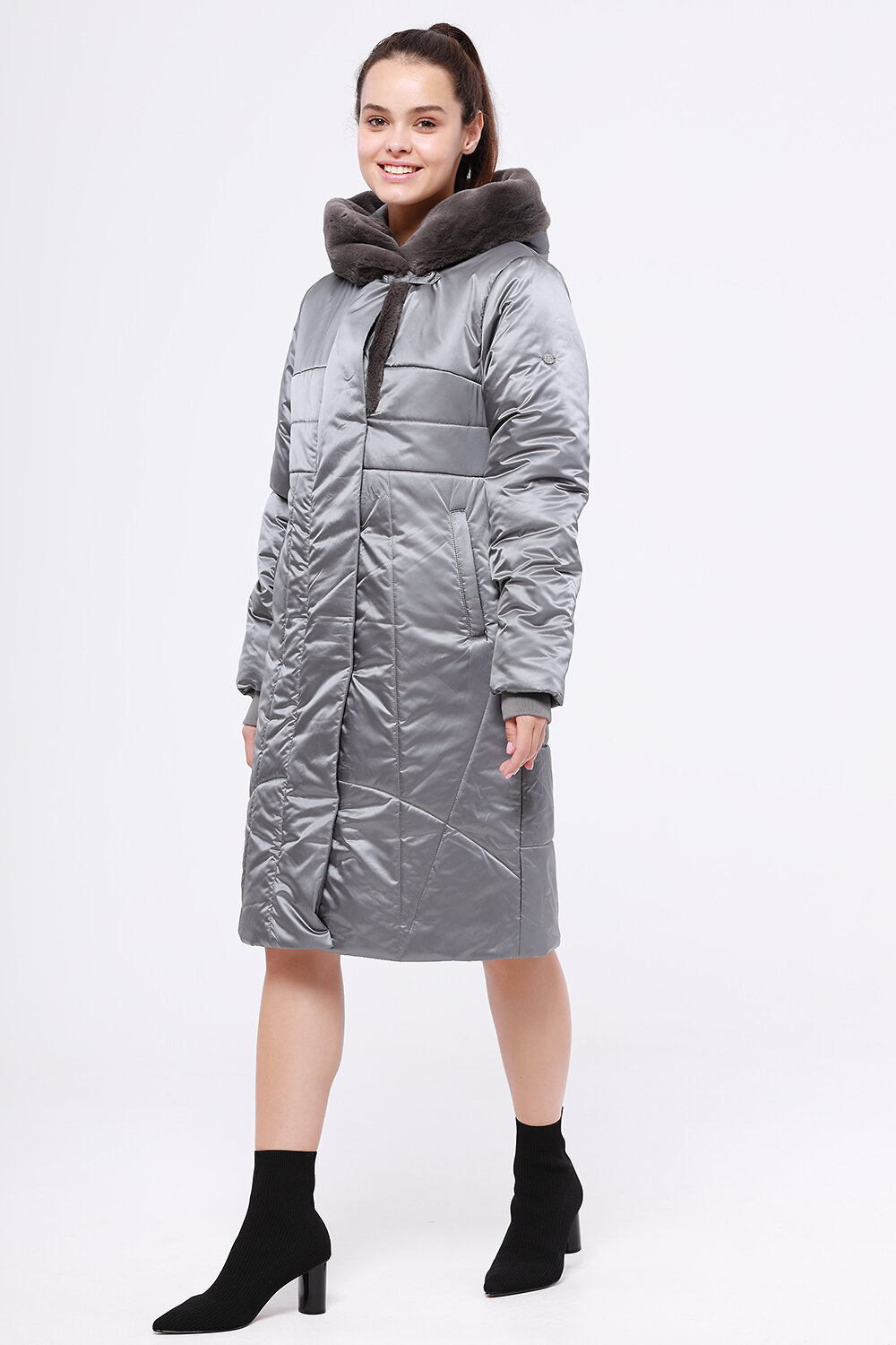 Утепленное пальто с отделкой из искусственного меха "под кролик", от российского производителя D’imma Fashion Studio. Центральная застежка на молнию и кнопки. Широкий размерный ряд, в наличии большие размеры.