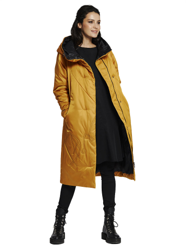 Свободное утепленное пальто Мальвено с оригинальной декоративной вышивкой на полочке, от российского производителя D’imma Fashion Studio. Застежка на молнию и кнопки. Широкий размерный ряд, в наличии большие размеры. Капюшон затягивается на кулиску и не отстегивается.