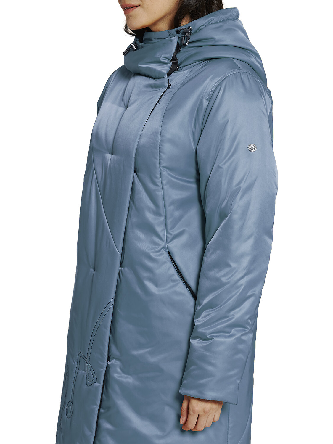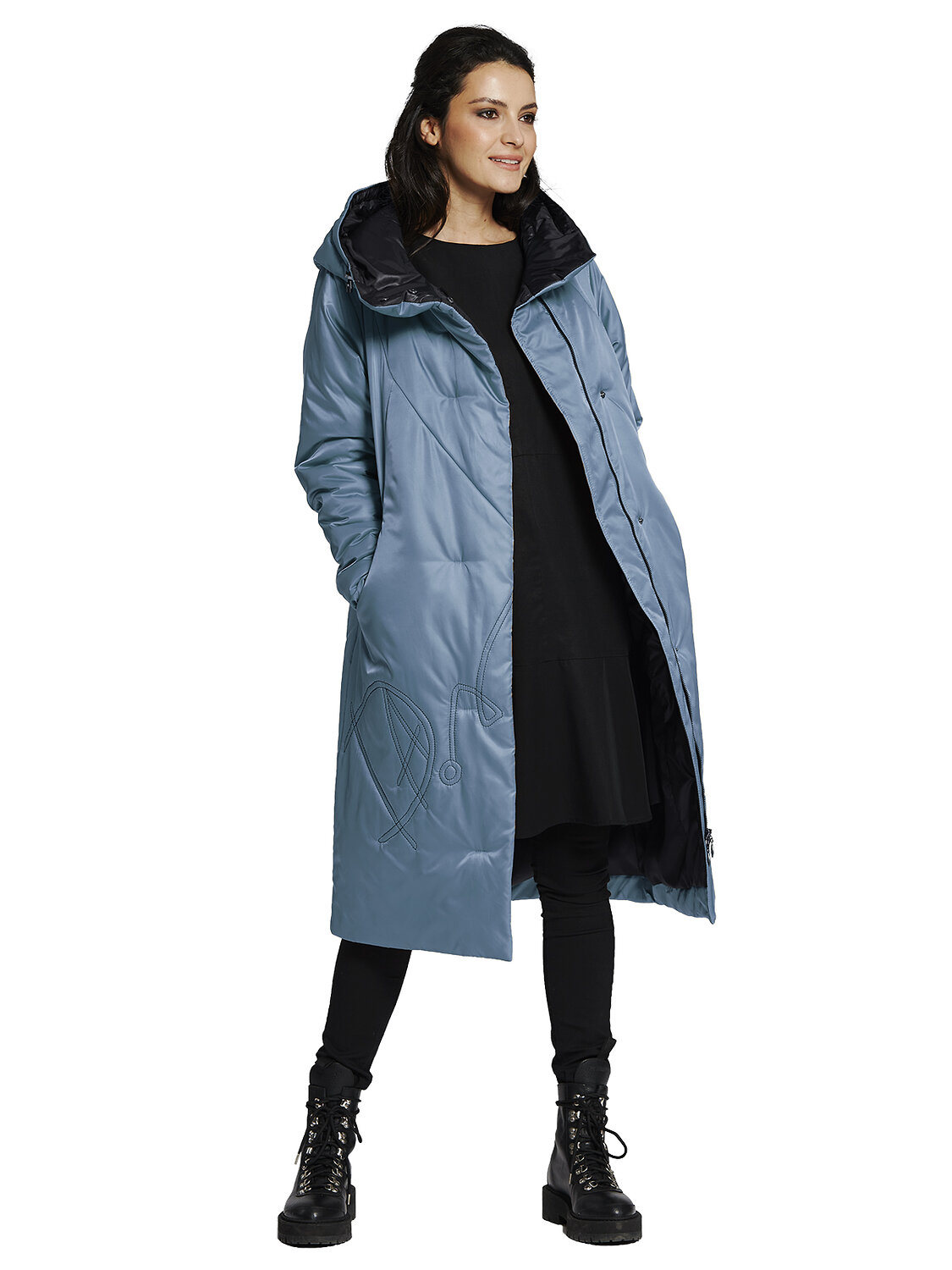 Свободное утепленное пальто Мальвено с оригинальной декоративной вышивкой на полочке, от российского производителя D’imma Fashion Studio. Застежка на молнию и кнопки. Широкий размерный ряд, в наличии большие размеры. Капюшон затягивается на кулиску и не отстегивается.