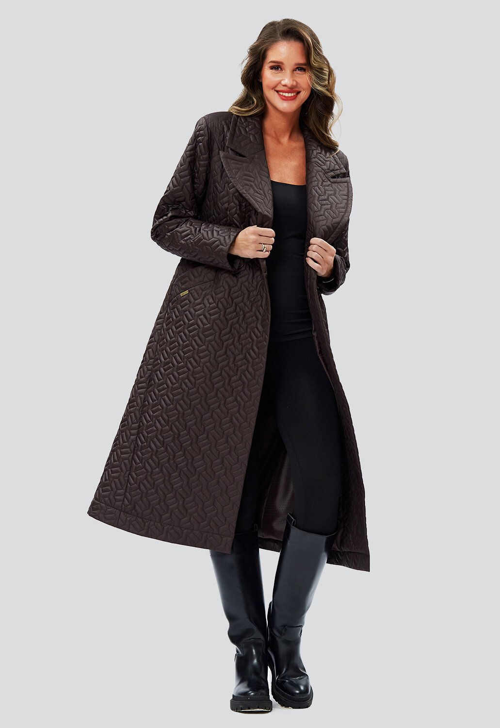 Дизайнерское, невероятно стильное, универсальное демисезонное стеганое пальто из ткани с водоотталкивающей пропиткой комфортной длины в Casual-стиле от российского производителя D’imma Fashion Studio А-силуэта с утеплителем нового поколения ТерМакс - необходимая часть гардероба, позволяющая подчеркнуть стиль, имидж и даже настроение женщины. Благодаря особой обработке каландером, утеплитель тонкий и лёгкий, сильнее сохраняет тепло, поэтому пальто теплое и легкое. Модель с двубортной застежкой на пуговицы и отложным воротником необычной конструкции подчеркивают оригинальность и небанальность дизайнерской задумки. Рельефы по переду и спинке формируют безупречный силуэт, прорезные удобные карманы с листочками дополняют образ и создают комфорт. Есть большие размеры. Просто, элегантно, удобно. Такая модель прекрасно сочетается как с классической обувью, так и с современными ботинками или сапогами, создавая новый свежий современный образ. Выбрав актуальное весеннее пальто D’imma можно быть уверенной в том, что лук соответствует последним тенденциям моды. А-силуэт и ничего лишнего, что может помешать Вам любоваться окружающим миром по дороге на работу, на прогулке в парке или по городу. Не взирая на причуды природы, в такой модели Вы будете выглядеть женственно и неповторимо. Можно дополнять яркими аксессуарами и менять образ под настроение. Разнообразные версии – ключ к созданию линейки модных, индивидуальных луков.