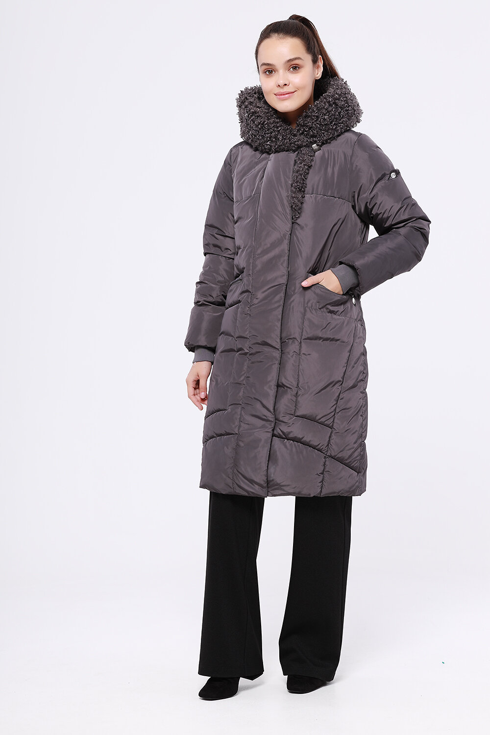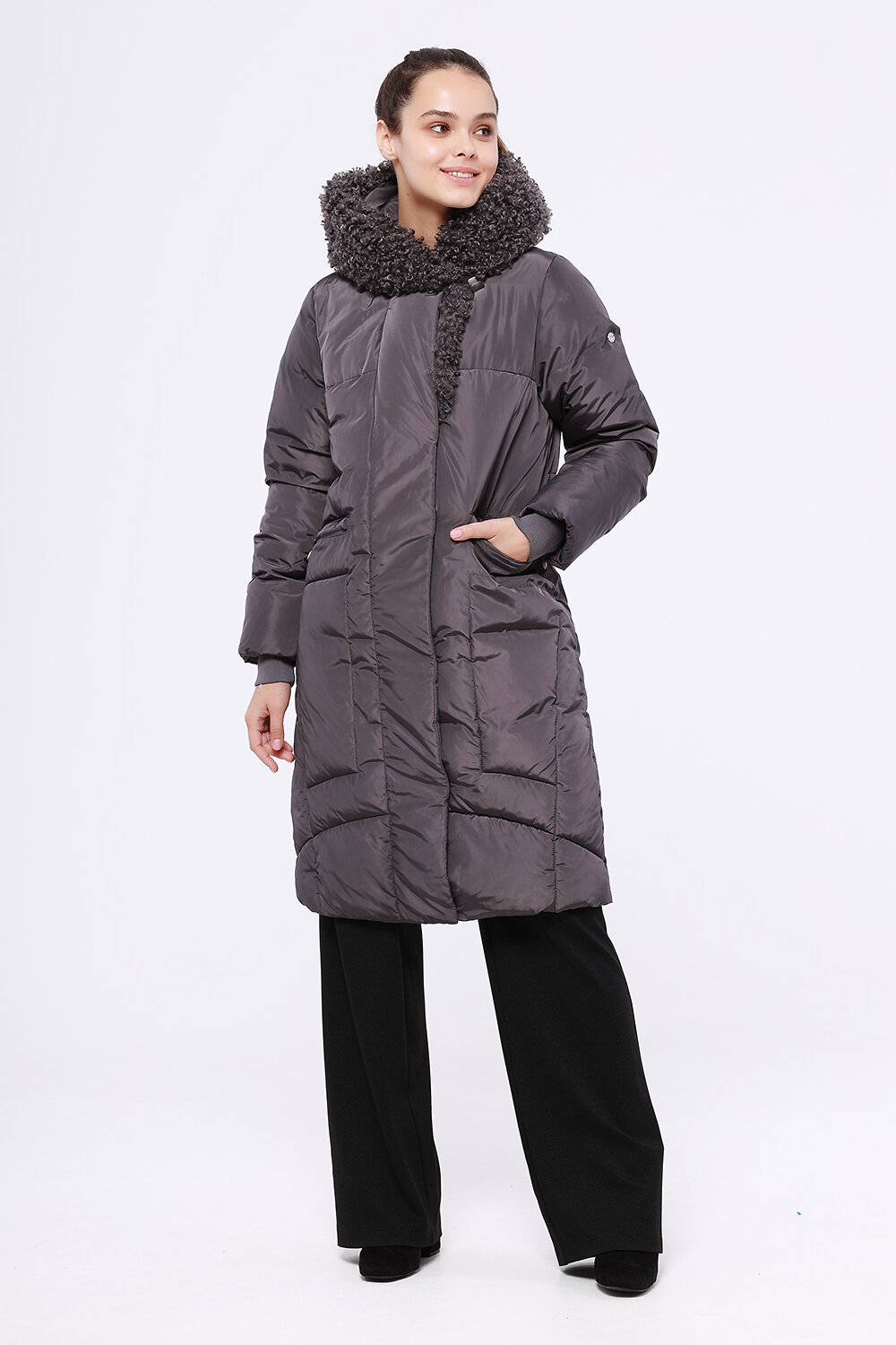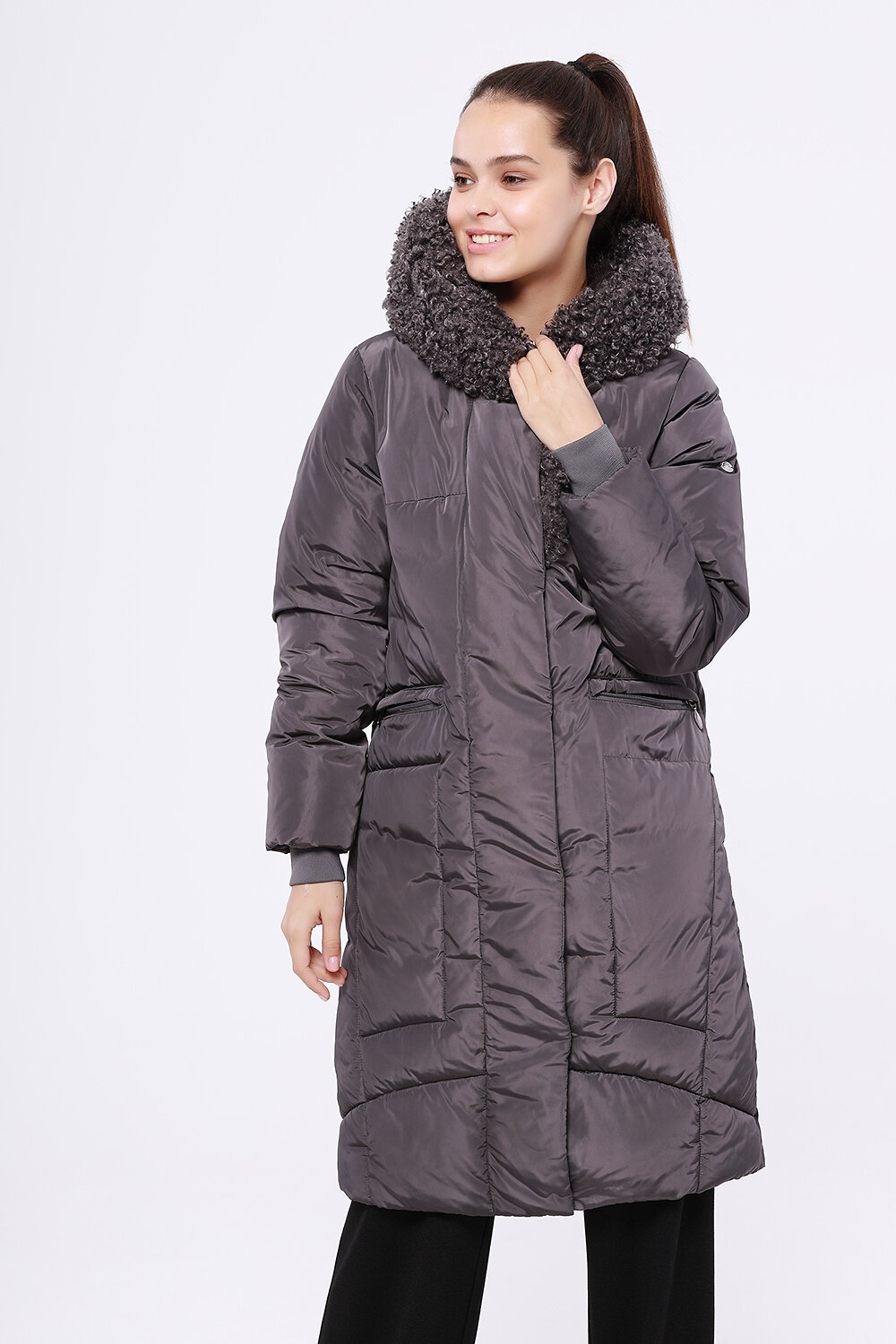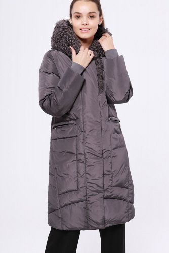 Теплое зимнее пальто от российского производителя D’imma Fashion Studio, с отделкой капюшона искусственным мехом "под козлик". Прорезные карманы на молнии, капюшон не отстегивается. Декоративная отстрочка на полочке. Центральная застежка на молнию и кнопки, декоративная пуговица на вороте. Широкий размерный ряд, в наличии большие размеры.