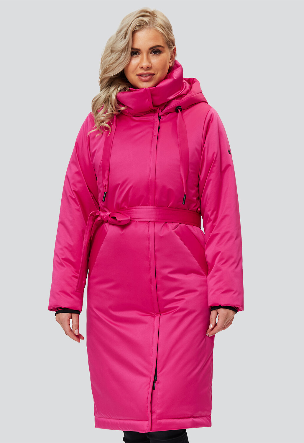 Модное, элегантное пальто комфортной длины из яркой ткани "мембрана" с водоотталкивающей пропиткой и суперсовременным утеплителем ТермМакс отражает тренд на сдержанность и лаконичность. Модель с отстегивающимся капюшоном со шнурком, регулирующим объем капюшона, с просторными карманами на молнии с листочками. Рукава с трикотажными манжетами. Пальто застегивается на молнию. Пояс в комплекте.