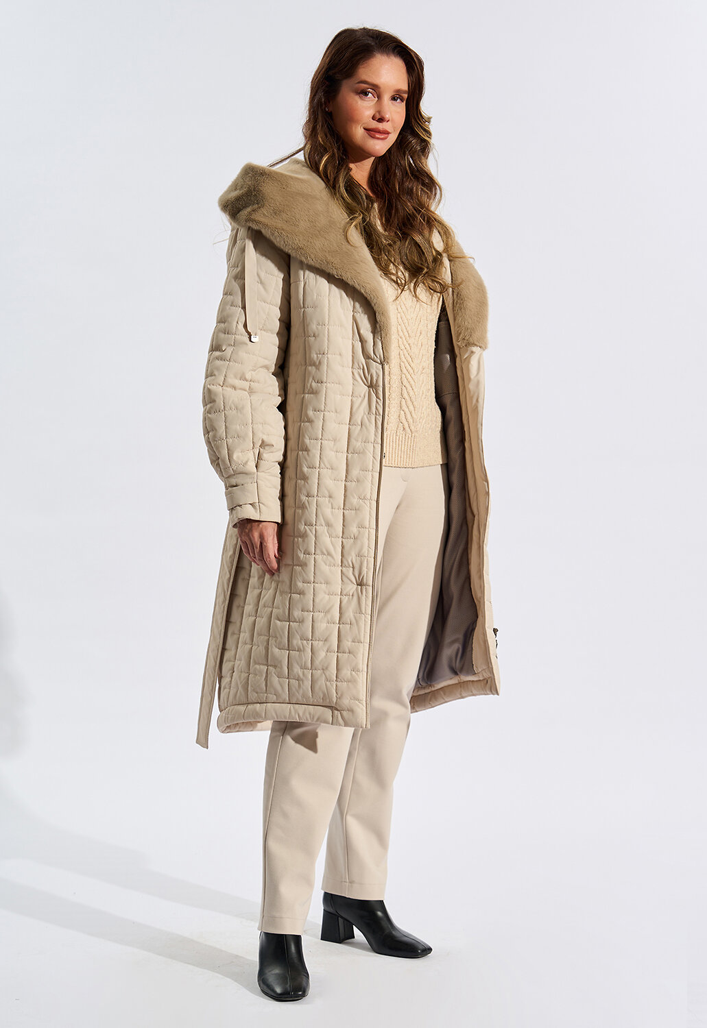 Модное, элегантное зимнее пальто с водоотталкивающей пропиткой прямого силуэта с утеплителем ТерМакс. Прорезные карманы застегиваются на молнию. Капюшон не отстегивается, внутри отделан Эко мехом " под норку ", при расстегивании выглядит как красивая , большая "шалька". Также капюшон можно плотно застегнуть на пуговицу. Модель с застежкой на двух замковую молнию и потайные кнопки. Рукав с трикотажной манжетой и хлястиками, помогающими регулировать длину и ширину рукава. Пояс в комплекте.