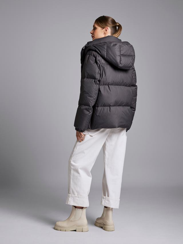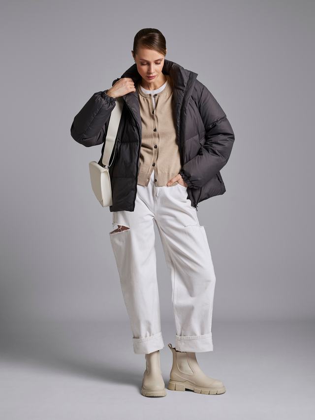 Проведите насыщенный зимний день без переживаний о погоде и своем комфорте благодаря водооталкивающей пропитке и утеплителю из 85% гусиного пуха и 15% пера. Прогулка с собакой под снегом, поездка на машине, поиск елки и подарков и игра в снежки без страха замерзнуть или промокнуть.