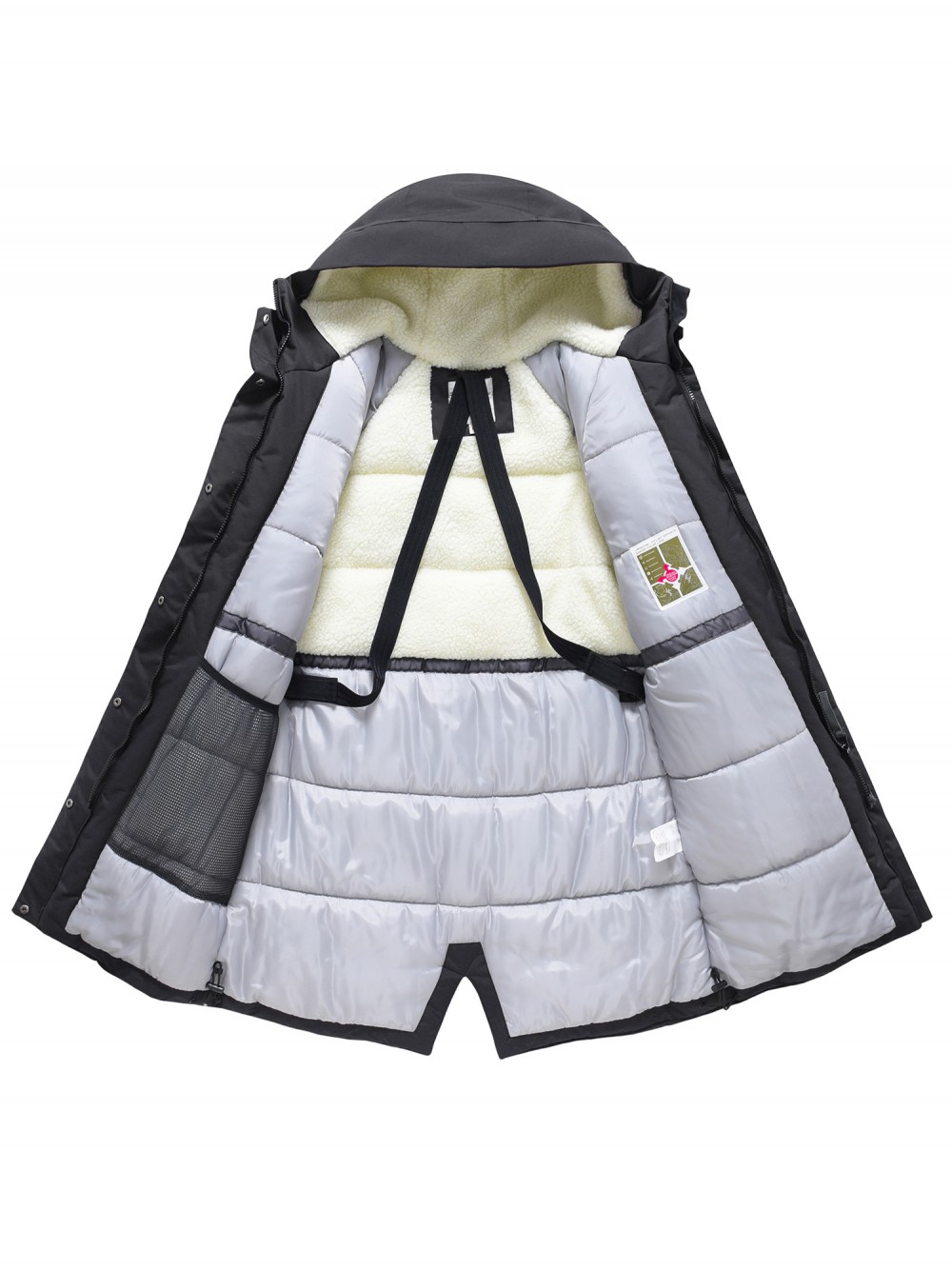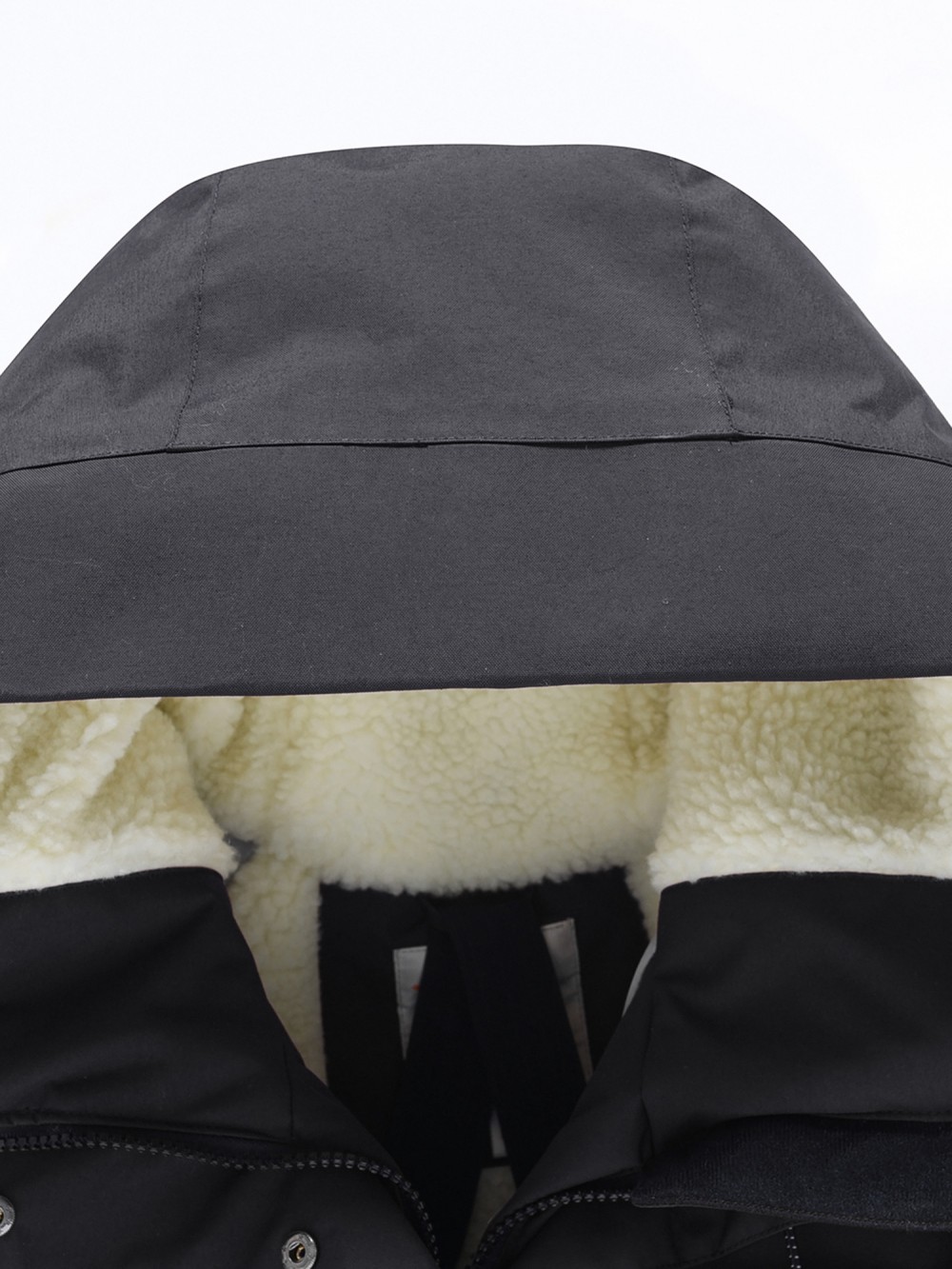 Внутренняя подкладка из овчины, полиэстера и флиса создаёт ощущение уюта и мягкого тепла. Несъёмный капюшон плотно прилегает, защищая голову от ветра и снега, а воротник-стойка надёжно закрывает шею. Регулируемые фиксаторы на рукавах, по низу и на капюшоне позволяют подстраивать посадку и сохранять тепло внутри.