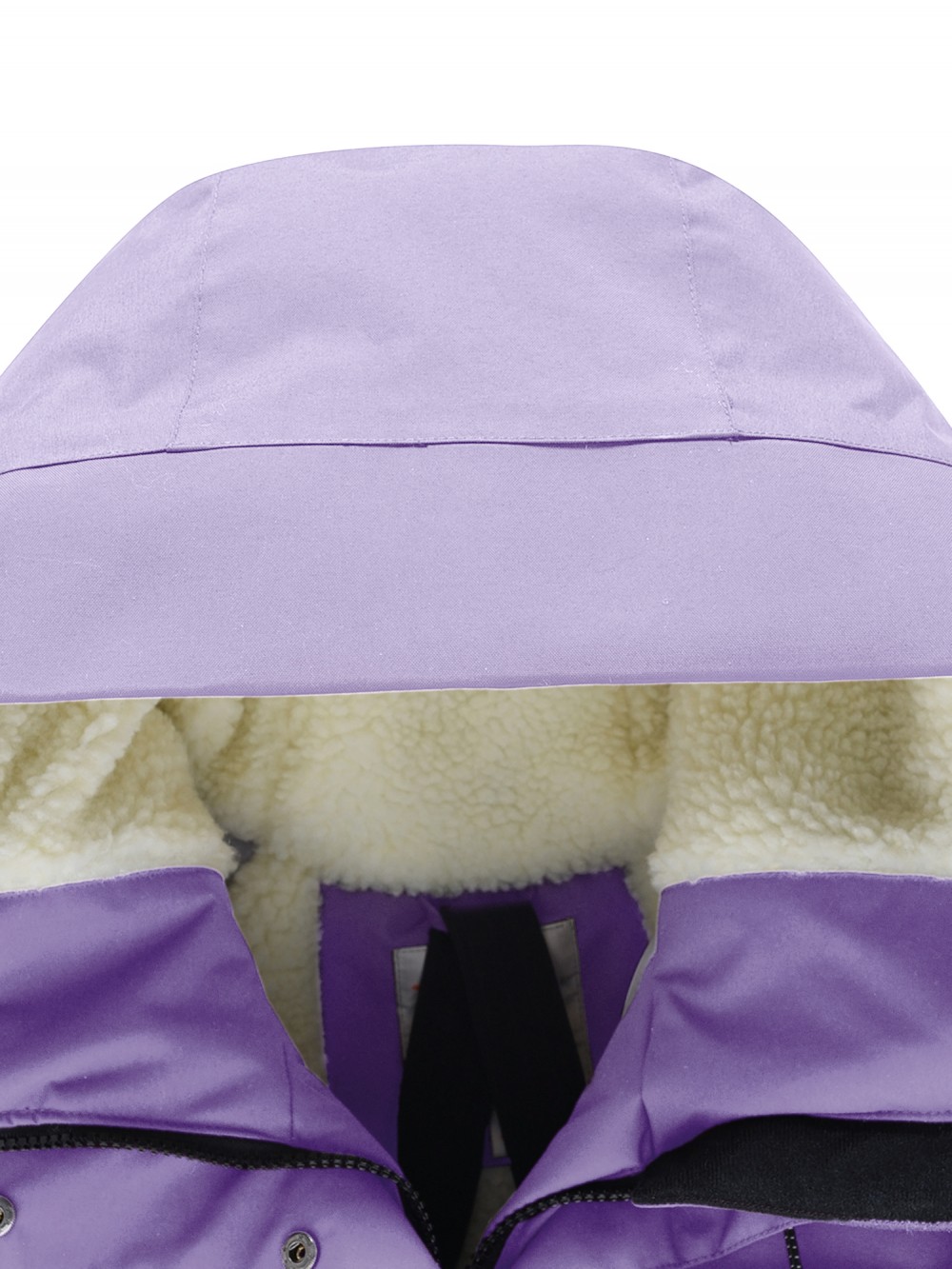Внутренняя подкладка из овчины, полиэстера и флиса создаёт ощущение уюта и мягкого тепла. Несъёмный капюшон плотно прилегает, защищая голову от ветра и снега, а воротник-стойка надёжно закрывает шею. Регулируемые фиксаторы на рукавах, по низу и на капюшоне позволяют подстраивать посадку и сохранять тепло внутри.