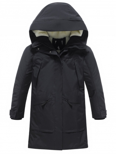 Внутренняя подкладка из овчины, полиэстера и флиса создаёт ощущение уюта и мягкого тепла. Несъёмный капюшон плотно прилегает, защищая голову от ветра и снега, а воротник-стойка надёжно закрывает шею. Регулируемые фиксаторы на рукавах, по низу и на капюшоне позволяют подстраивать посадку и сохранять тепло внутри.
