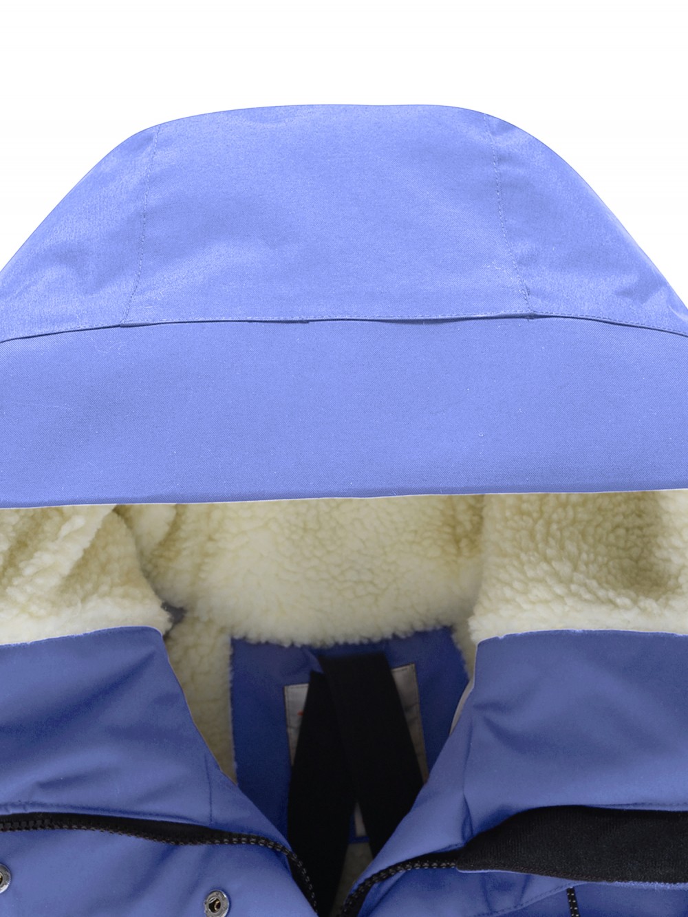 Внутренняя подкладка из овчины, полиэстера и флиса создаёт ощущение уюта и мягкого тепла. Несъёмный капюшон плотно прилегает, защищая голову от ветра и снега, а воротник-стойка надёжно закрывает шею. Регулируемые фиксаторы на рукавах, по низу и на капюшоне позволяют подстраивать посадку и сохранять тепло внутри.