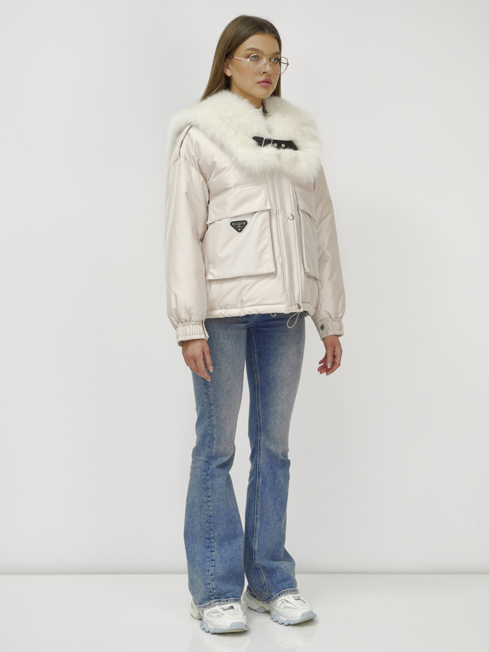 Куртка бомбер ангел с мехом песец премиум класса бежевого цвета 390_1B