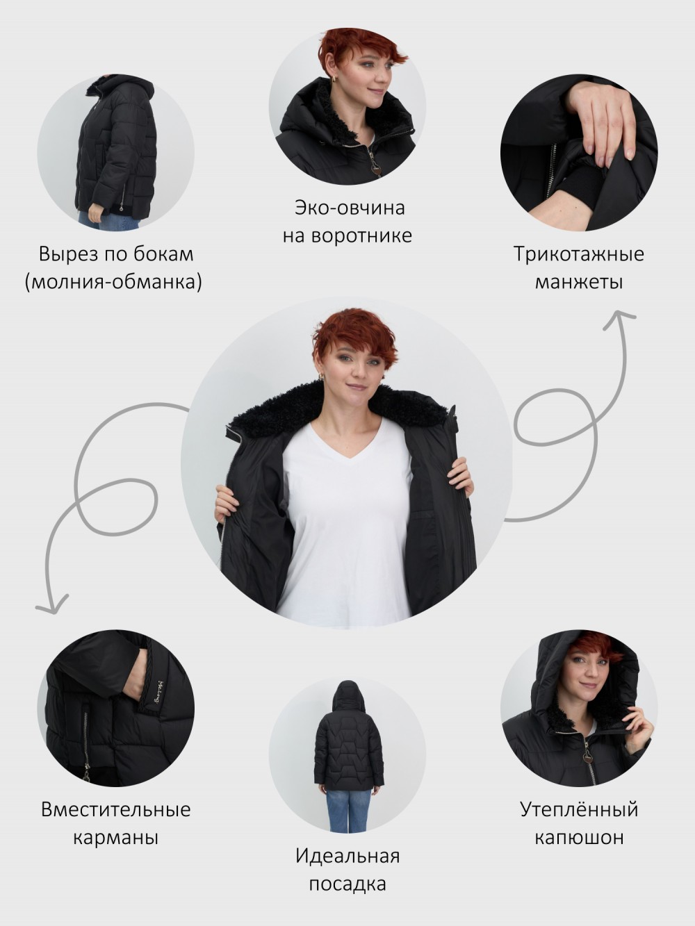 Особенности модели: быстросохнущая, ветрозащита, водоотталкивающий материал, гипоаллергенный материал, дышащий материал, с вырезом